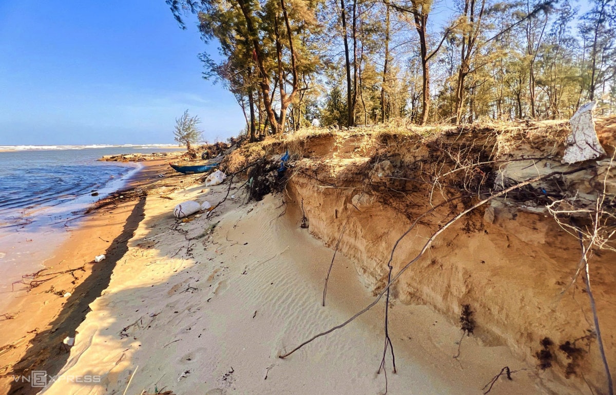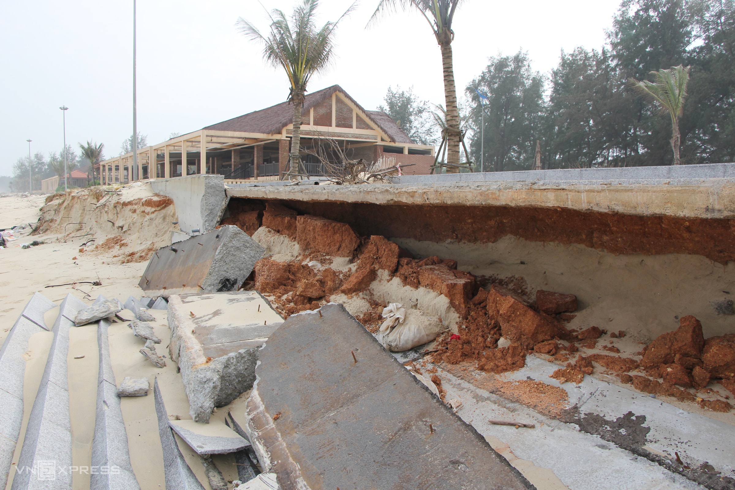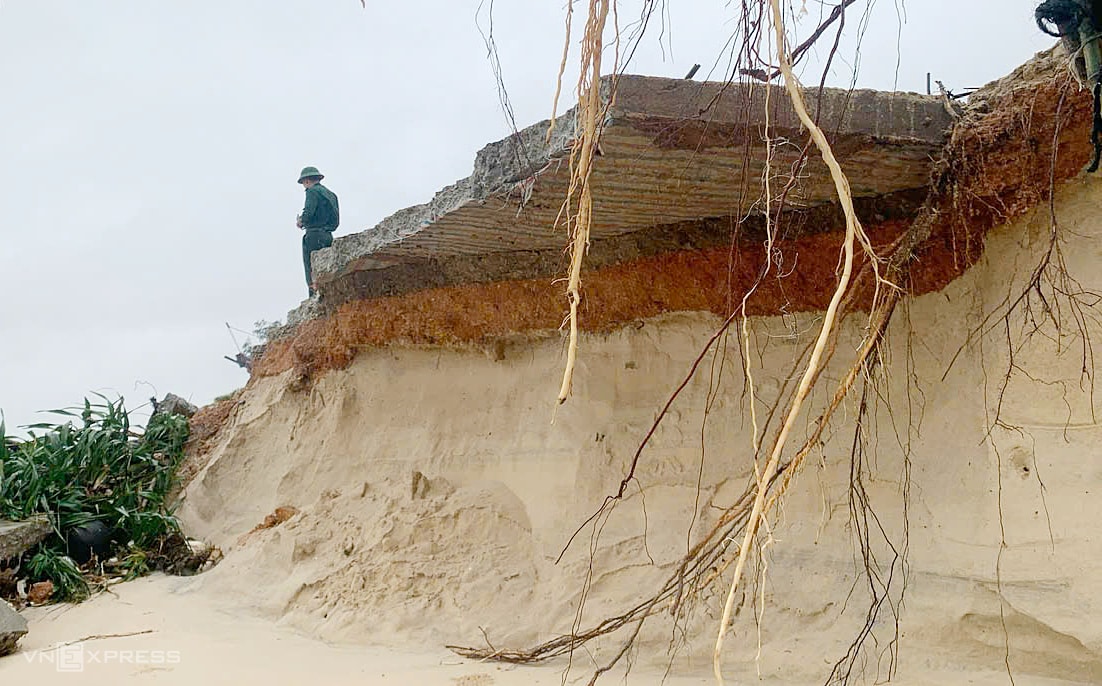 Sau các đợt mưa bão, sóng biển xâm thực làm sạt lở nhiều tuyến bờ kè ven biển Quảng Trị, cuốn trôi cây cối, công trình phụ trợ và uy hiếp nhà ở, hồ nuôi thủy sản của người dân.