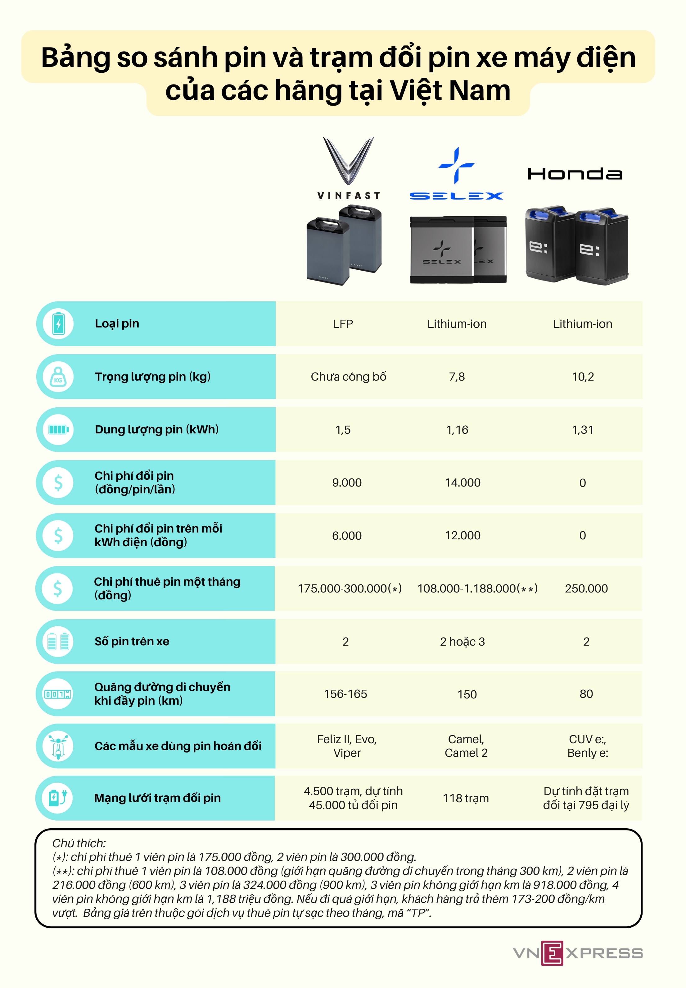 Trong khi VinFast áp đảo đối thủ bằng số lượng trạm đổi, Honda chọn hướng miễn phí đổi pin, Selex Motors theo đuổi mô hình tính phí theo gói.