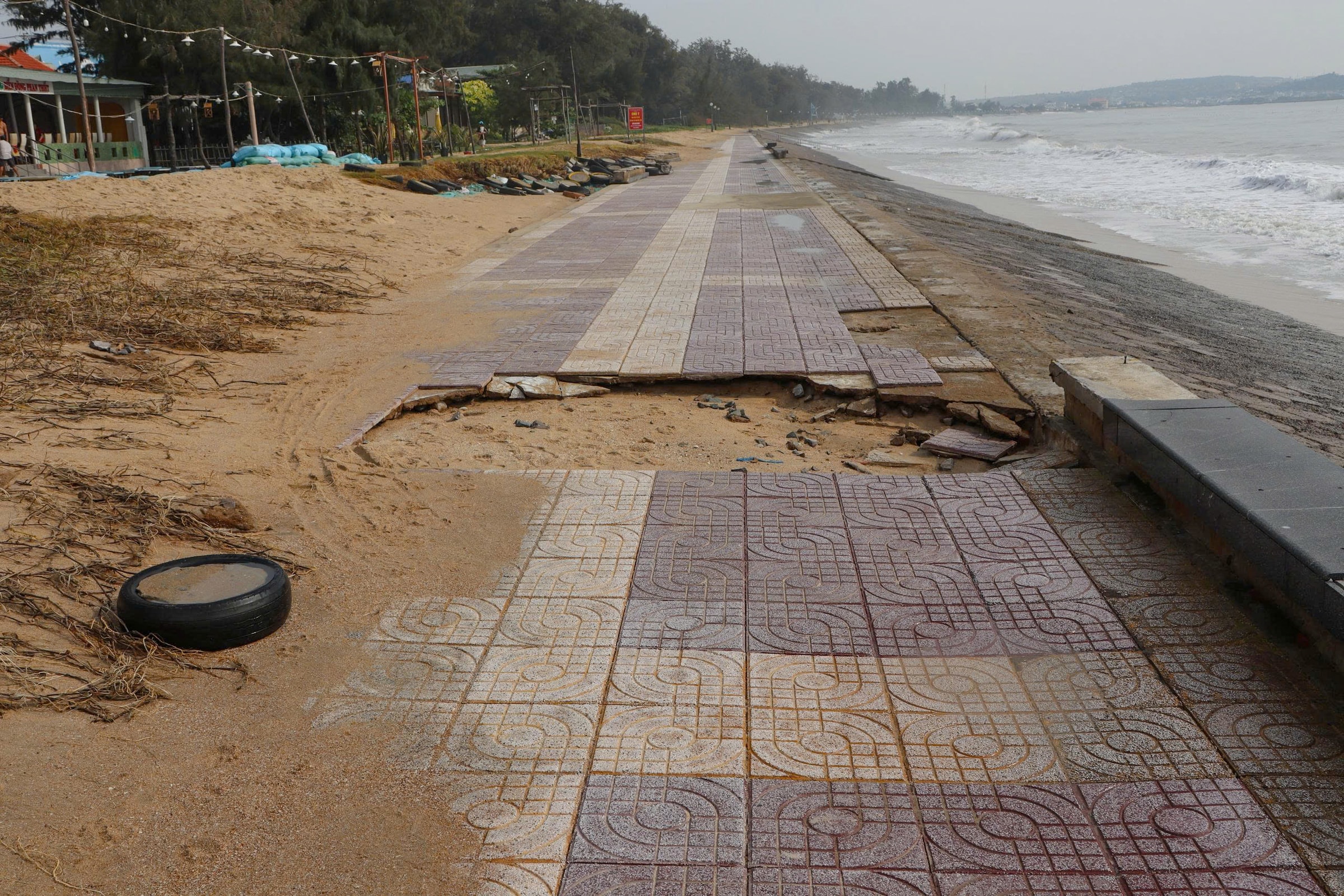 Ảnh hưởng của bão Koto, sóng biển cao 4-5 m tràn vào bờ biển Nha Trang, Phan Thiết, Mũi Né, Quy Nhơn làm hư hỏng bờ kè, chân cầu.