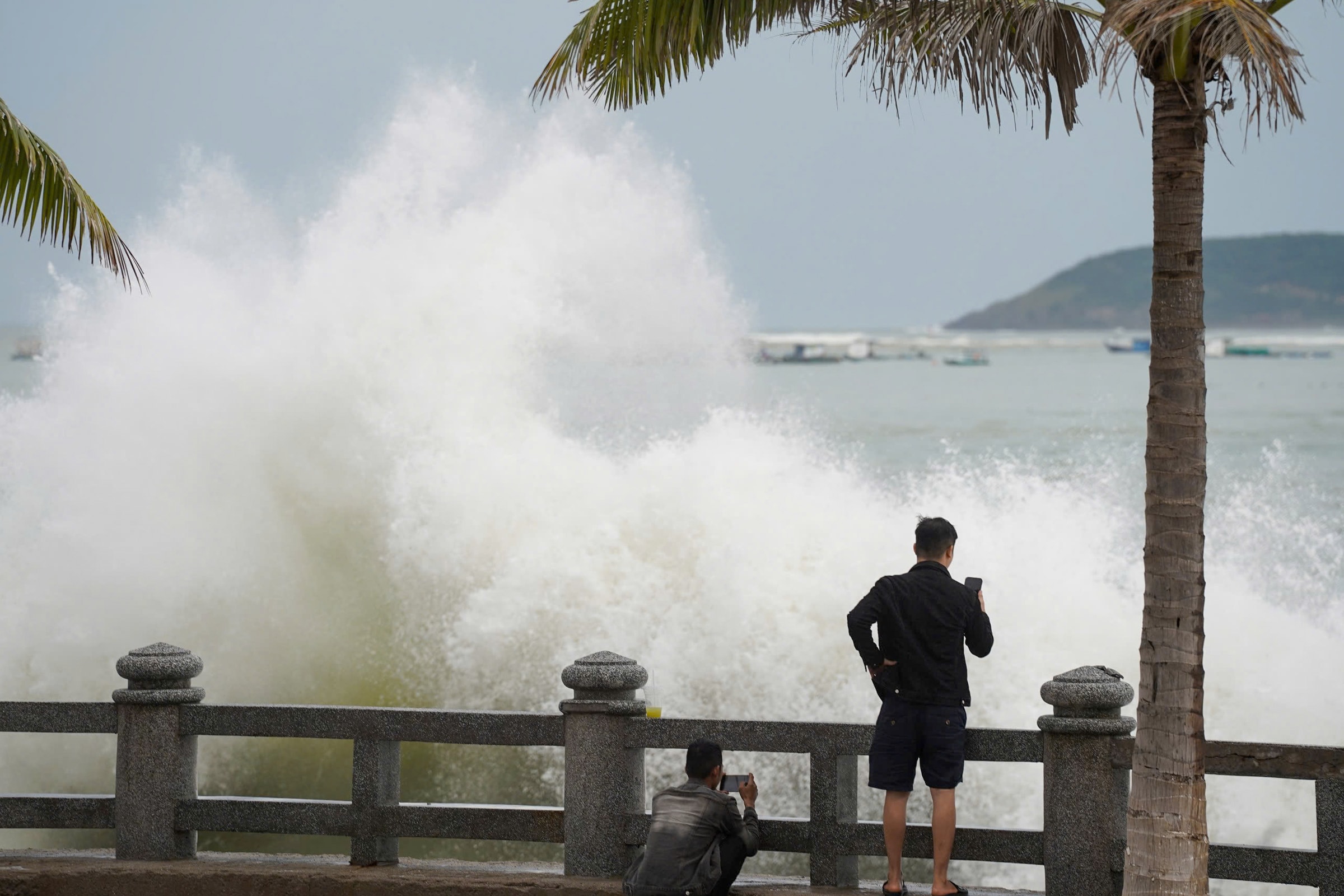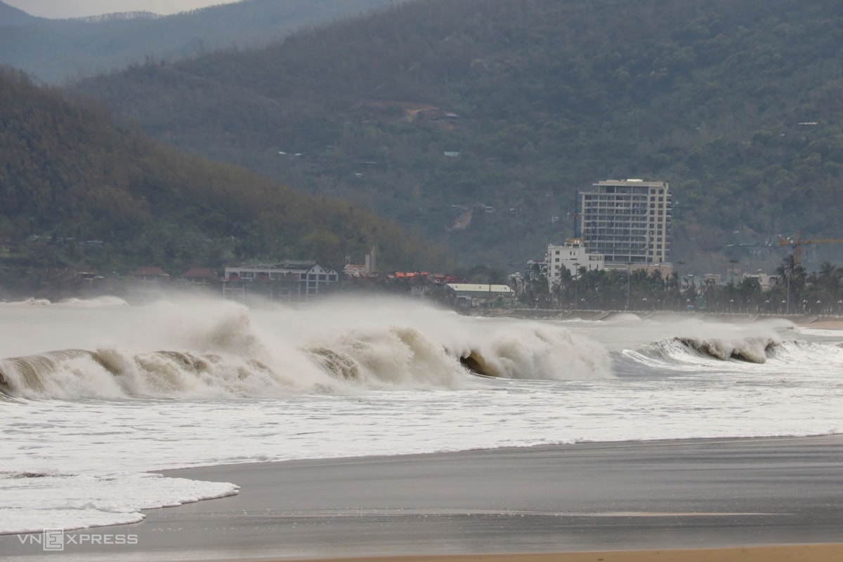 Sóng 4-5 m tràn vào bờ biển Nam Trung Bộ