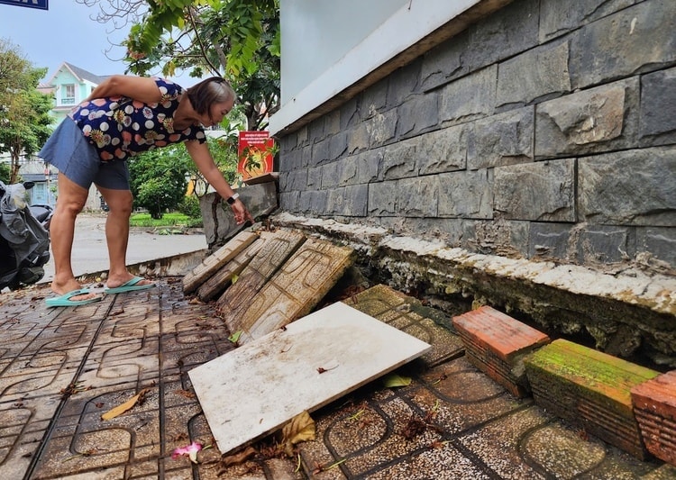 Ban đầu, dọc chân tường dài 20 m chỉ xuất hiện vài vết nứt nhỏ, sau đó rộng dần khi nền đất hạ xuống, tạo khoảng hở tới 60 cm. Khe hở ẩm thấp, thường có rắn và chuột chui vào làm tổ, bò lên nhà. Bà Tuý từng rải thuốc diệt nhưng khi chúng chết gây mùi hôi, việc dọn dẹp rất vất vả. Gia đình đã ba lần nâng nền trước nhà để lấp khoảng trống, song đất tiếp tục sụt, lớp xi măng lại nứt vỡ, buộc phải dùng gạch che chắn tạm.