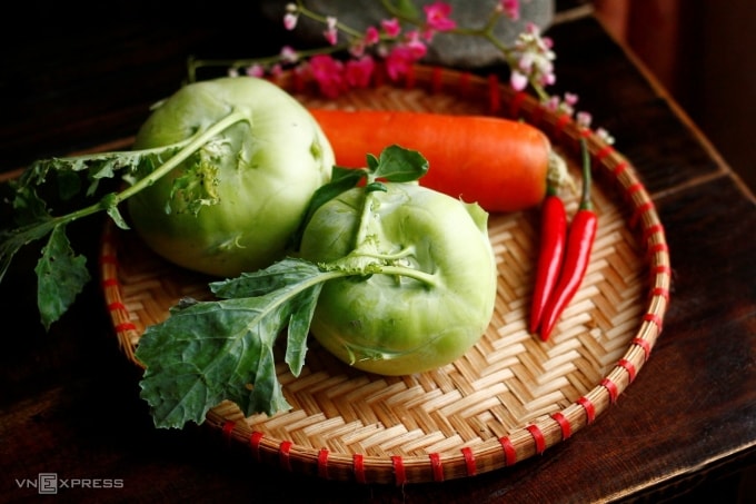 Chọn và sơ chế: Chọn su hào vừa độ (không già hay non quá), cầm nặng tay, vỏ ngoài xanh nhạt tươi tự nhiên, lá xanh dính vào cuống. Không chọn quả củ to, cứng, bóng láng hoặc bị dập nát. Tùy khẩu vị có thể thái con chì bằng dao lượn hoặc tỉa hoa thái vuông quân cờ. Cà rốt rửa sạch, gọt vỏ, thái tương tự su hào.