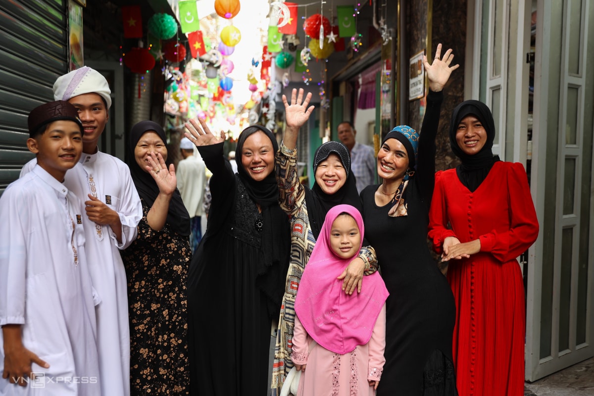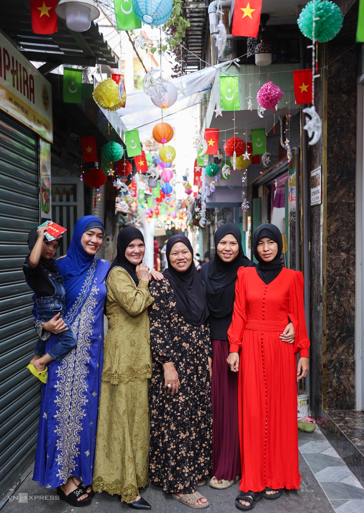 Sáng 21/3, hàng trăm người Chăm sinh sống tại hẻm 157 Dương Bá Trạc, phường Chánh Hưng, đổ ra đường chào mừng lễ Hari Raya Aidilfitri.