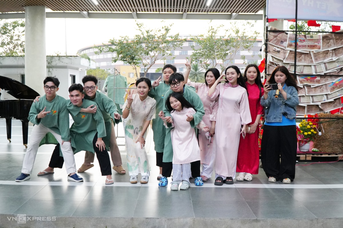 Chương trình Tết Hy Vọng được tổ chức ngày 7/2 trong khuôn viên ngôi trường mới khánh thành hồi tháng 8/2025. Với không gian rộng rãi, học sinh và các giáo viên Trường Hy Vọng thỏa sức trang trí các tiểu cảnh, góc chụp ảnh đậm không khí Tết với những chậu cúc rực rỡ, hoa mai và hoa đào giấy do chính tay các em làm.