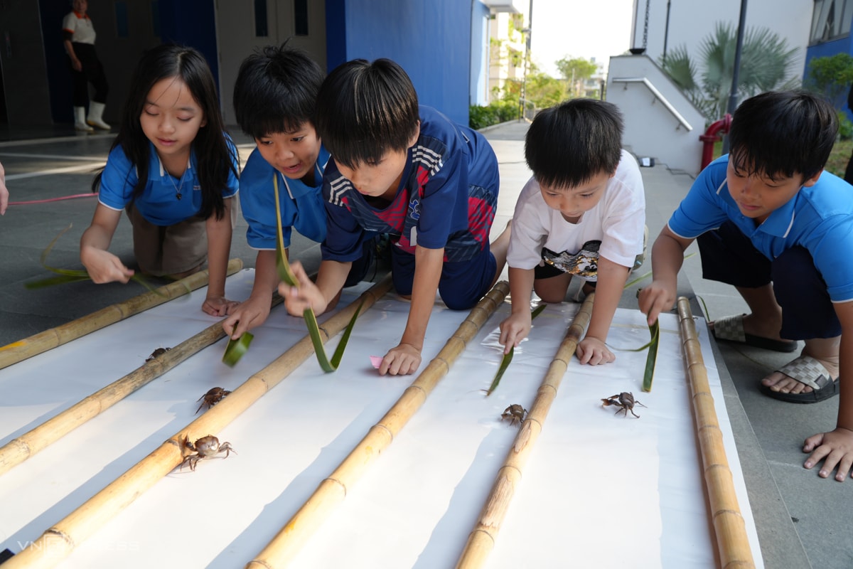 Các trò chơi cũng thu hút đông đảo học sinh tham gia. Ngọc Diệp, 11 tuổi, cho hay đây là lần đầu tiên chơi trò đua cua, dù không thắng lần nào nhưng em vẫn rất thích mỗi khi "ứng viên" của mình bước vào đường đua tranh tài.