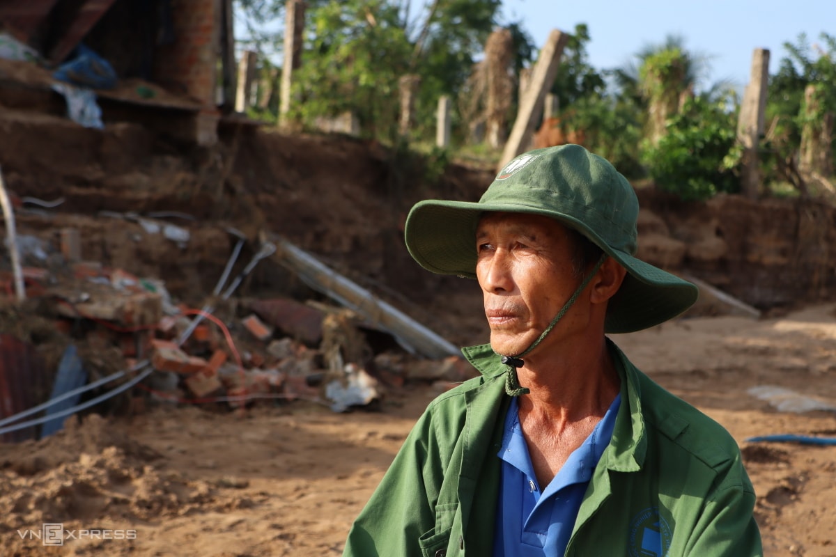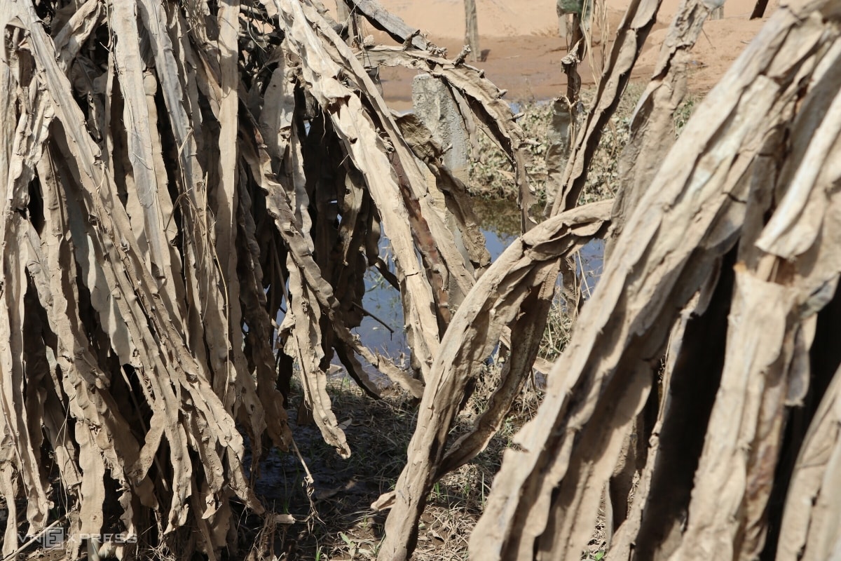 "Cành dính bùn và úng nước, chặt cho bò ăn, nó cũng chê luôn", ông Trúc cho hay và xác định vườn thiệt hại toàn bộ.