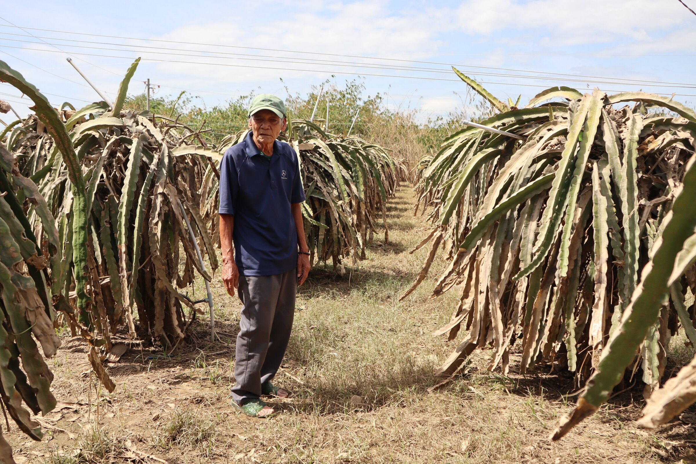 Hàng loạt vườn thanh long ở hạ du sông Cái (tỉnh Bình Thuận cũ) bị thối rễ, chết dần, quả lấm bùn hư hỏng, chủ vườn trắng tay.