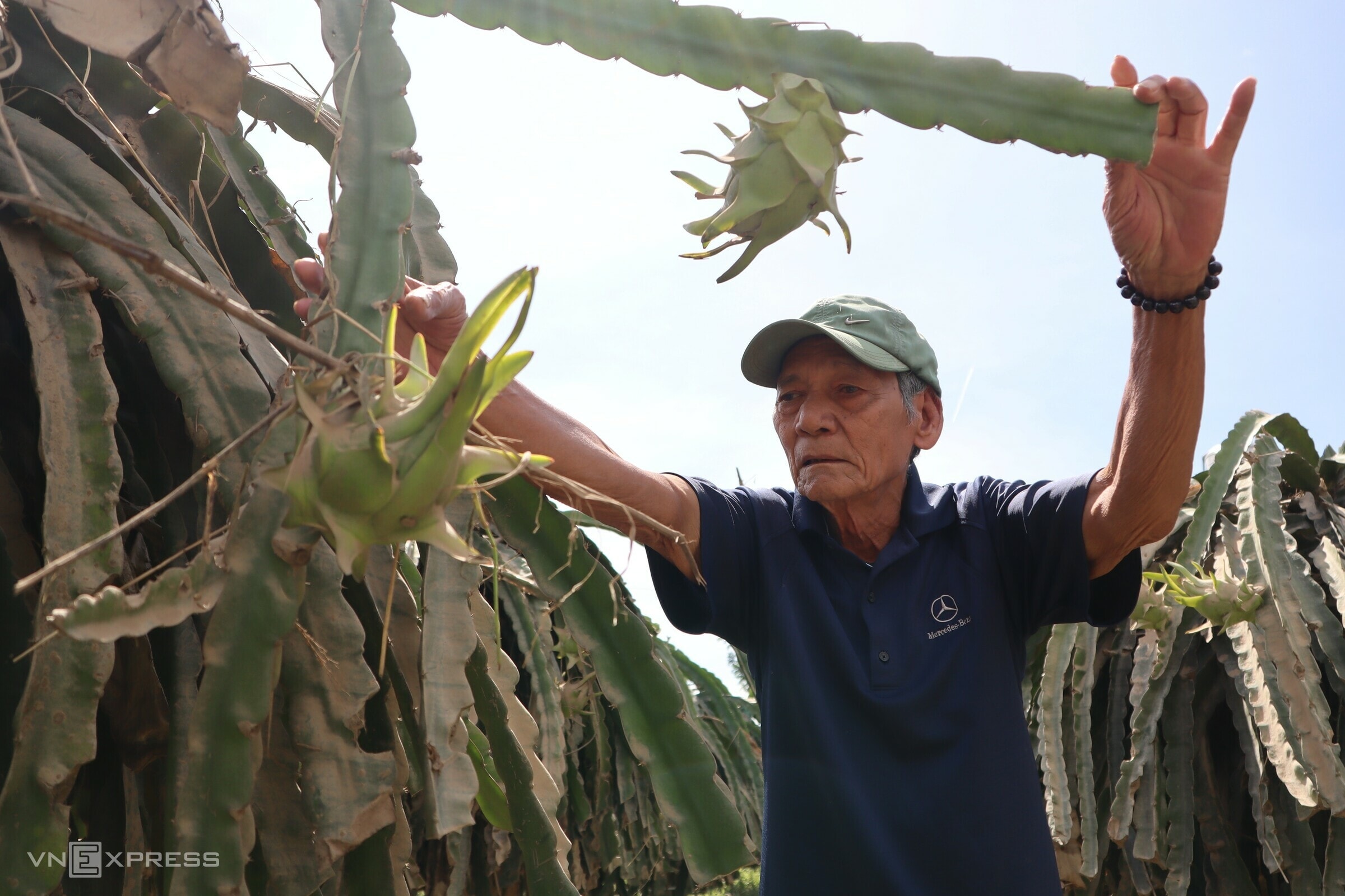 Chủ vườn cho hay, thanh long thuộc họ xương rồng, không chịu được nước. Sau khi bị ngâm nước 2-3 ngày, gốc úng nước sẽ từ từ thối rễ, sau đó cành sẽ chết theo.