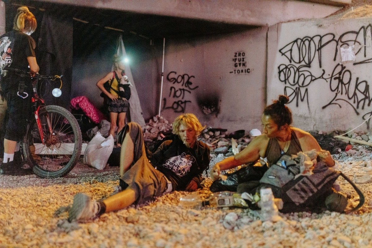 Zack, 24 tuổi, nằm trên sỏi với bạn gái, mắt lờ đờ như vừa dùng chất gây nghiện. Anh ta mất việc trong đại dịch và mất luôn căn nhà nên chuyển xuống đất sống. Zack cho biết cảnh sát thường đột kích khu hầm này vì "bất kỳ khi nào có tội phạm, họ sẽ mò xuống đây đầu tiên".