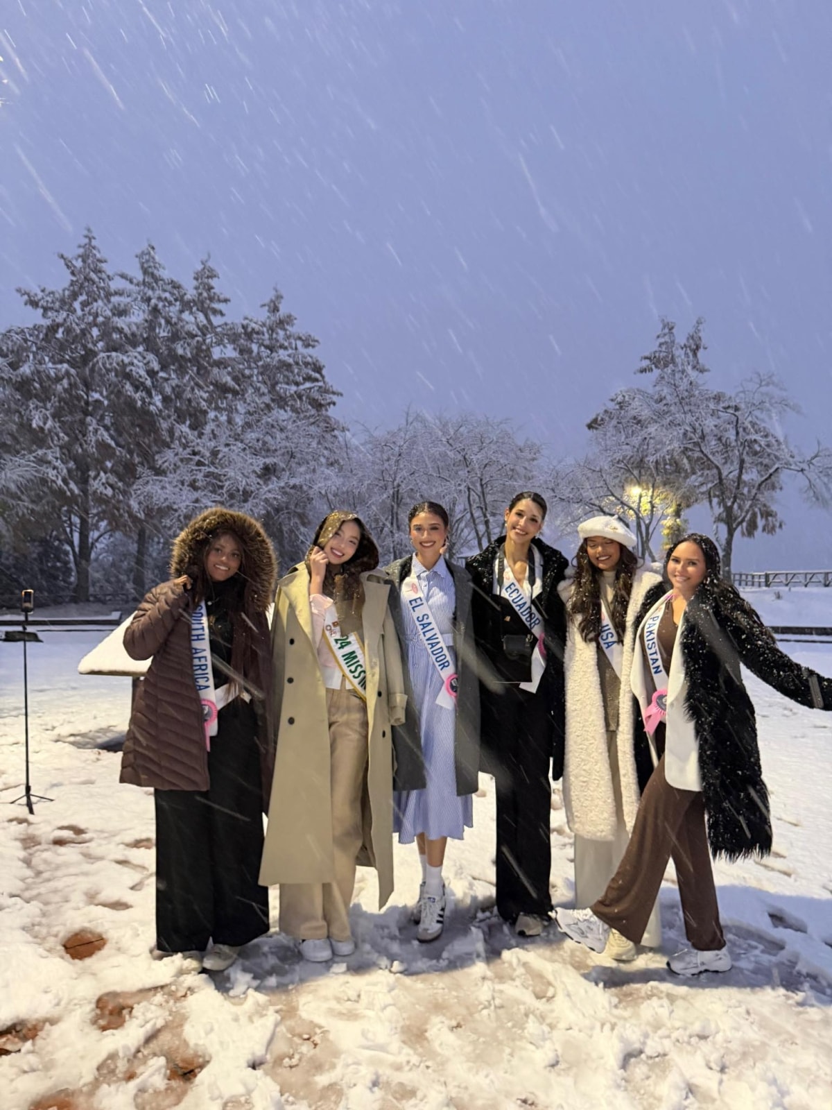 Cô cùng các người đẹp vui đùa dưới tuyết trong chuyến thăm tỉnh Niigata.
