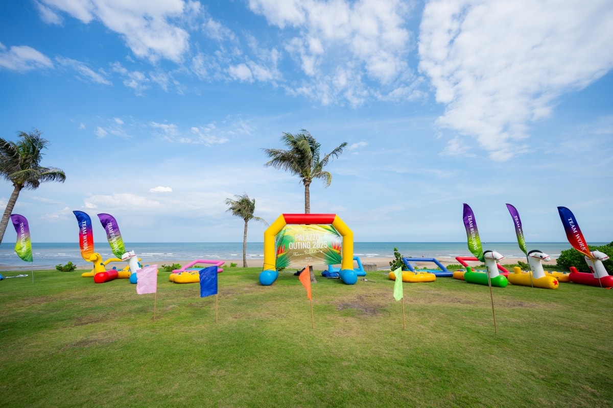 Bên cạnh không gian trong nhà, những khu vực ngoài trời như bãi biển, thảm cỏ ven hồ bơi hay khu Central Park rộng rãi, thoáng đãng, phù hợp tổ chức team building, tiệc tối hoặc các hoạt động gắn kết nội bộ.