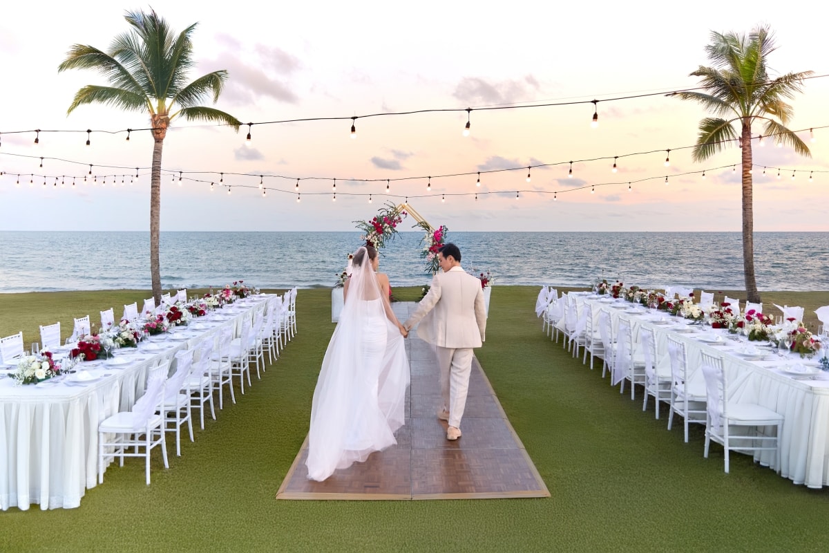 Các đôi cũng có thể chọn tổ chức tiệc cưới tại đây với đa dạng chủ đề, bối cảnh nhờ bờ biển dài, bãi cỏ rộng với không gian mở kết hợp tiện ích hiện đại như lễ vow (đọc lời thề) ngoài trời hay tiệc tối tinh giản. Hệ thống phòng suite và biệt thự cũng hợp những đôi muốn gói trọn đám cưới trong một kỳ nghỉ. Cô dâu, chú rể có thể nghỉ ngơi trong không gian riêng tư vào đêm trước ngày trọng đại. Bạn bè, người thân đến chung vui có thể ở lại thêm vài ngày sau lễ cưới để tận hưởng kỳ nghỉ.
