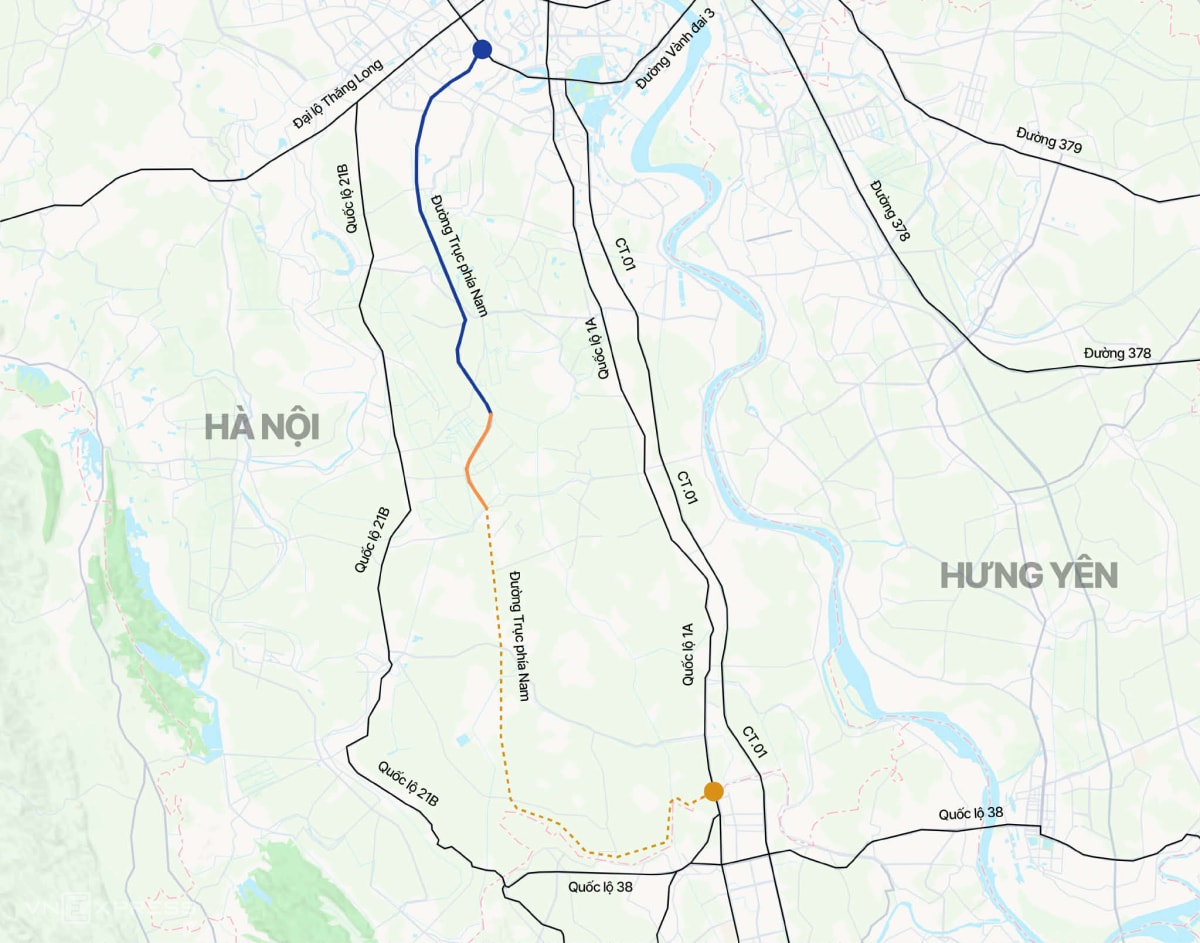 Đường trục phía Nam dài hơn 40 km, chuẩn bị thông xe thêm 7 km, giúp kết nối trung tâm Hà Nội với các xã phía Nam và tỉnh Ninh Bình.