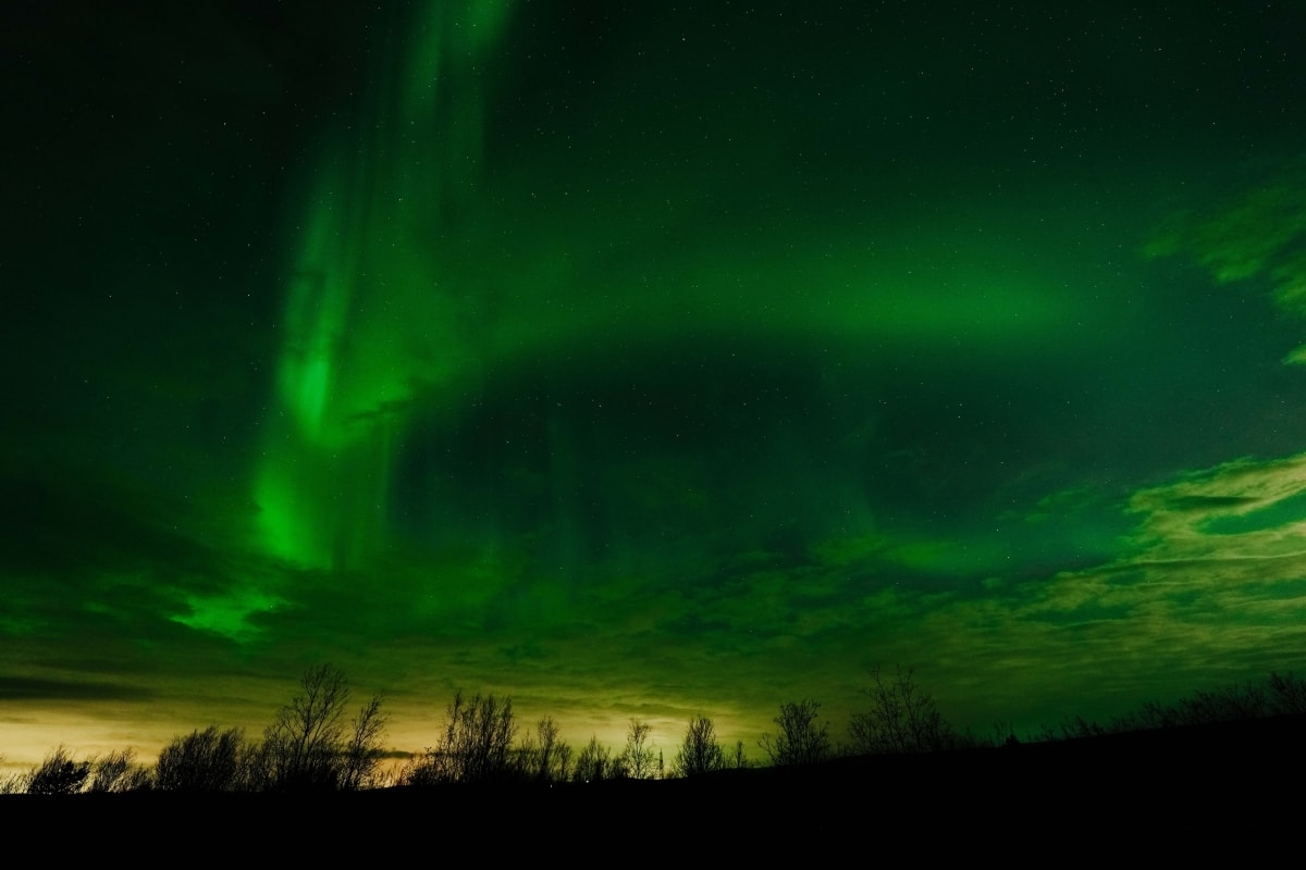 Murmansk là một trong những nơi hiếm hoi ở Nga có thể ngắm cực quang. Vào những đêm quang mây, bầu trời thành phố rực lên với dải sáng xanh tím huyền ảo uốn lượn giữa không trung. Hiện tượng thiên nhiên kỳ thú này thường xuất hiện từ tháng 9 đến tháng 3, thu hút du khách khắp nơi tìm đến trải nghiệm cảm giác đứng giữa bầu trời phương Bắc rực sáng.