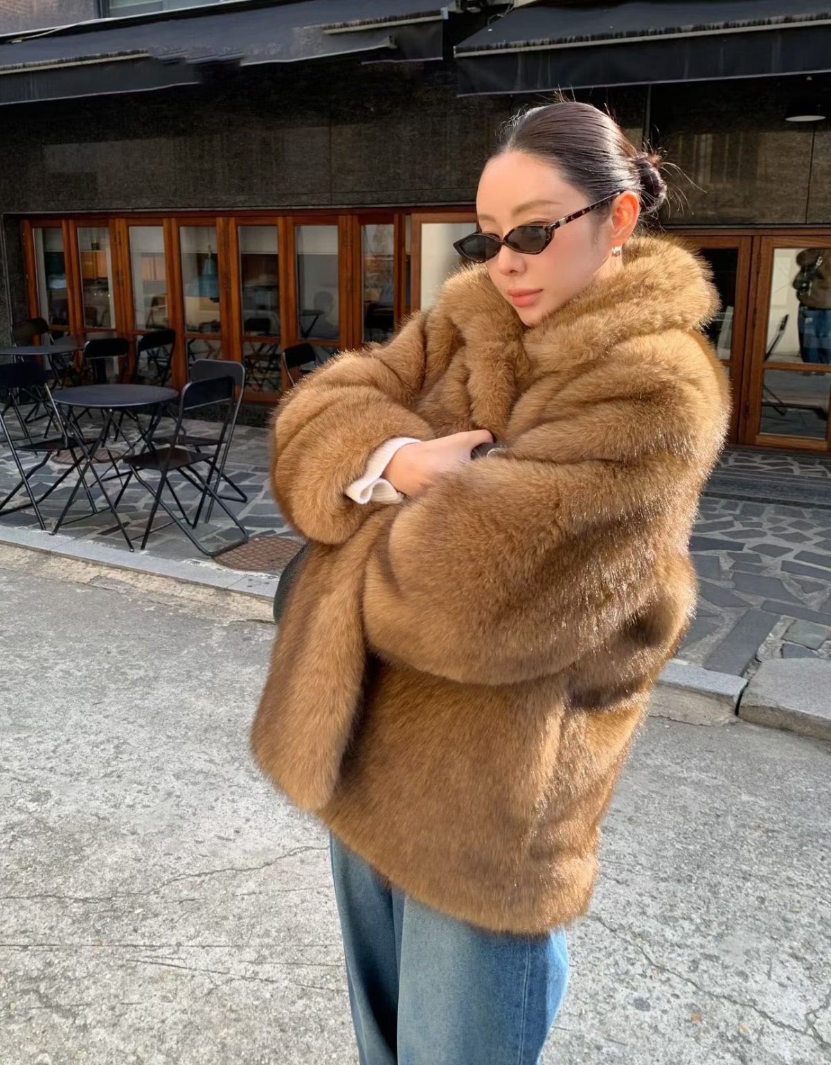 Năm nay, một trong những điểm khác biệt là áo khoác lông lớn được nhiều hãng lăng xê cho dân văn phòng. Thông thường, thiết kế này thường dành cho các buổi tiệc tùng, sự kiện.