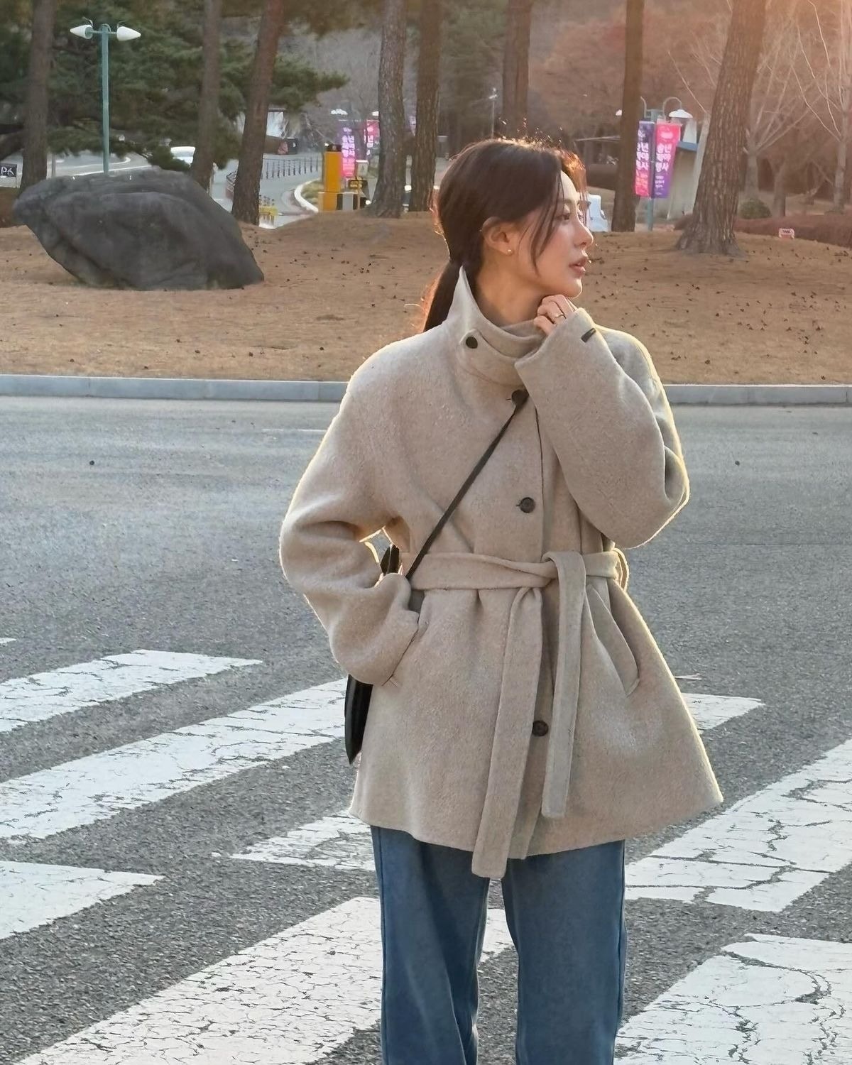 Theo WWW, áo choàng cổ phễu thắt đai dáng ngắn là một trong những xu hướng được lăng xê mạnh cho giới văn phòng mùa rét. Kiểu áo này toát lên vẻ thanh lịch mà vẫn giữ ấm tốt, giúp người mặc tôn dáng với phần thắt lưng tạo eo, tay áo thụng nhẹ đem đến sự thoải mái.