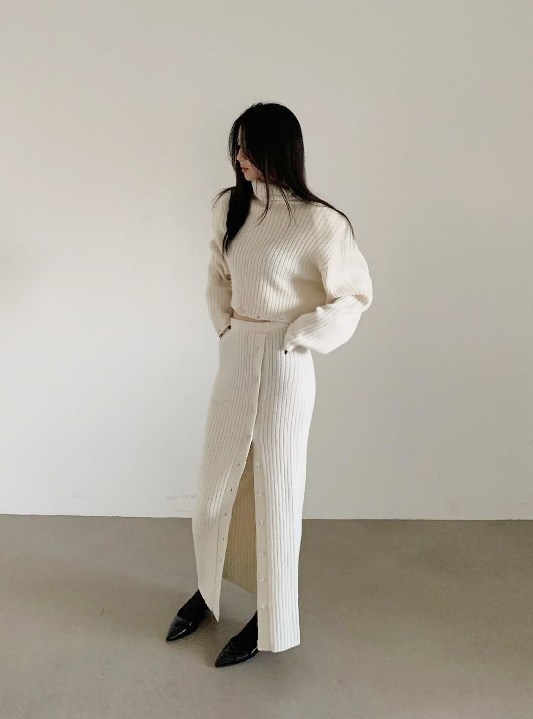 Diện váy áo len đồng bộ cũng là kiểu mốt rộ lên từ năm ngoái, tiếp tục được đẩy mạnh trong năm nay. Nhiều người yêu thích phong cách này vì tiện lợi và trông sang trọng. Bạn có thể kết hợp chúng với giày mũi nhọn, bốt cao gót ôm sát cổ chân.