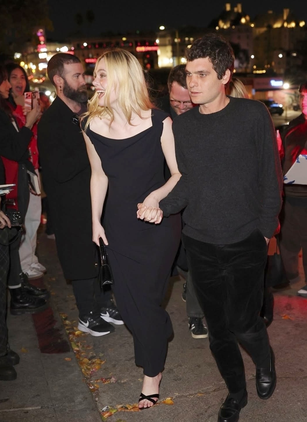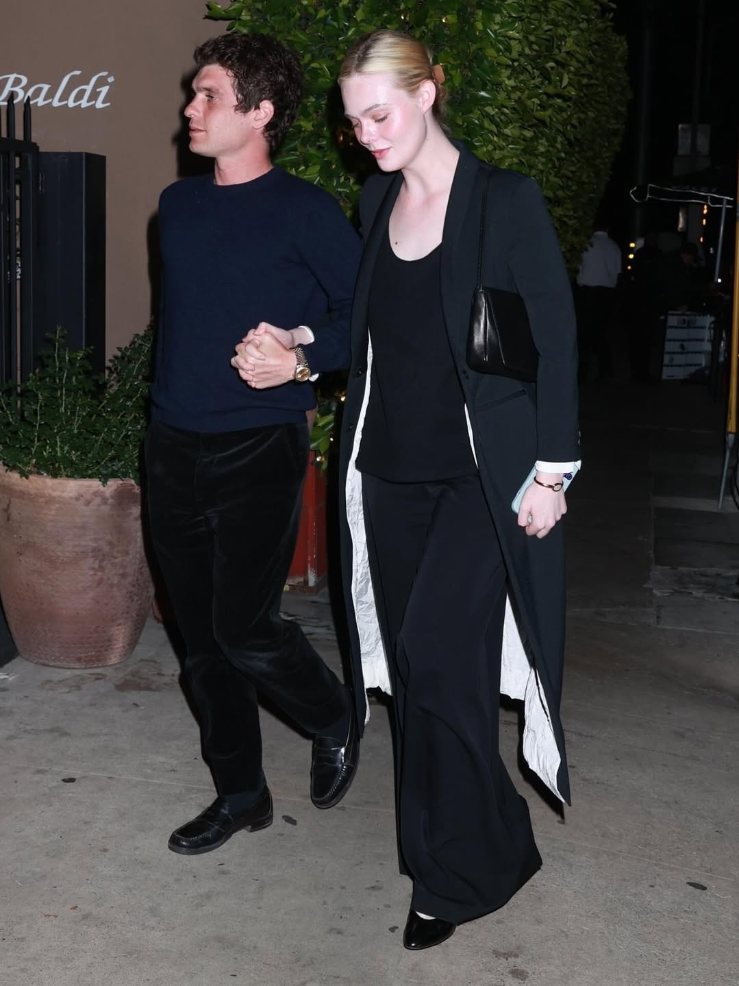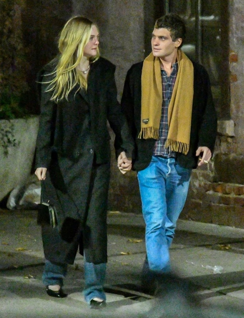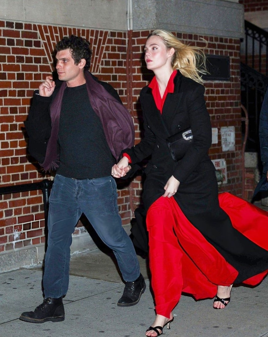 Theo Instyle, khi hẹn hò, cả hai thoải mái thể hiện gu mặc riêng nhưng vẫn có nhiều điểm chung về tinh thần và màu sắc. Tại các sự kiện, Elle thường chọn váy dạ hội couture, vintage, đính kết lấp lánh. Gus gắn liền với các bộ tuxedo truyền thống, hướng đến hình ảnh quý ông thanh lịch. Đời thường, Elle chuộng đầm maxi, váy midi, áo khoác dáng dài, thể hiện sự nhẹ nhàng. Bạn trai cô thường mặc trang phục đơn giản, kiểu dáng cơ bản như sweatshirt, quần jeans, quần kaki, giày loafer. Ảnh: Backgrid