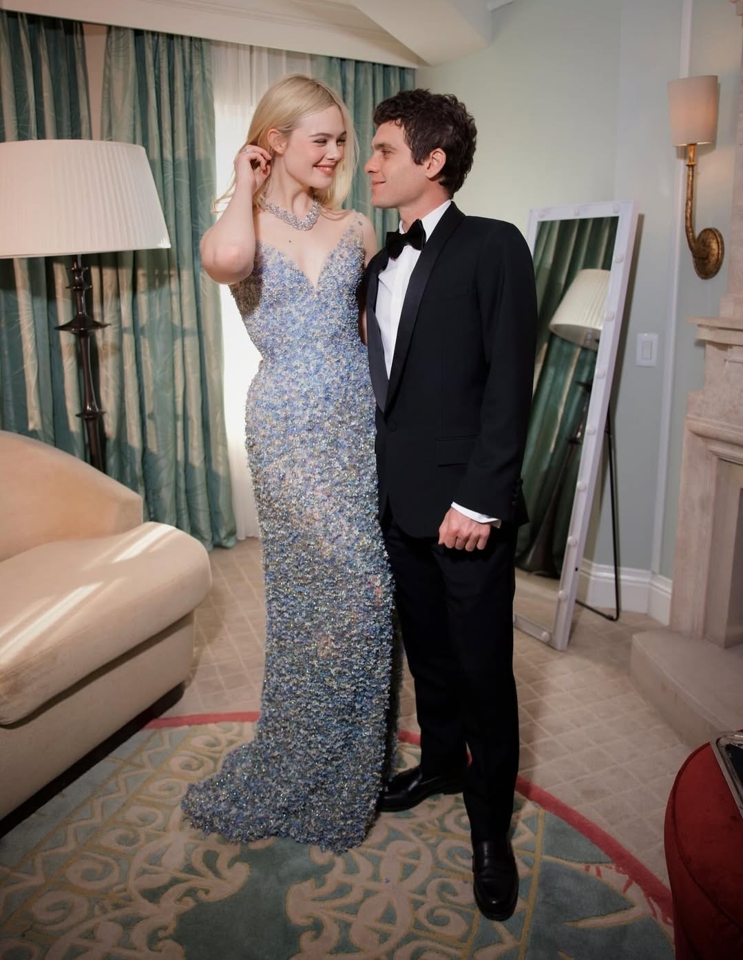 Elle Fanning và Gus Wenner gây chú ý khi tới lễ trao giải Quả Cầu Vàng 2026 hôm 11/1. Tạp chí Instyle nhận xét cả hai trông đẹp đôi với trang phục thảm đỏ sang trọng. Với thiết kế của Gucci, Elle là một trong 10 mỹ nhân mặc đẹp của sự kiện. Ảnh: Instagram Elle Fanning
