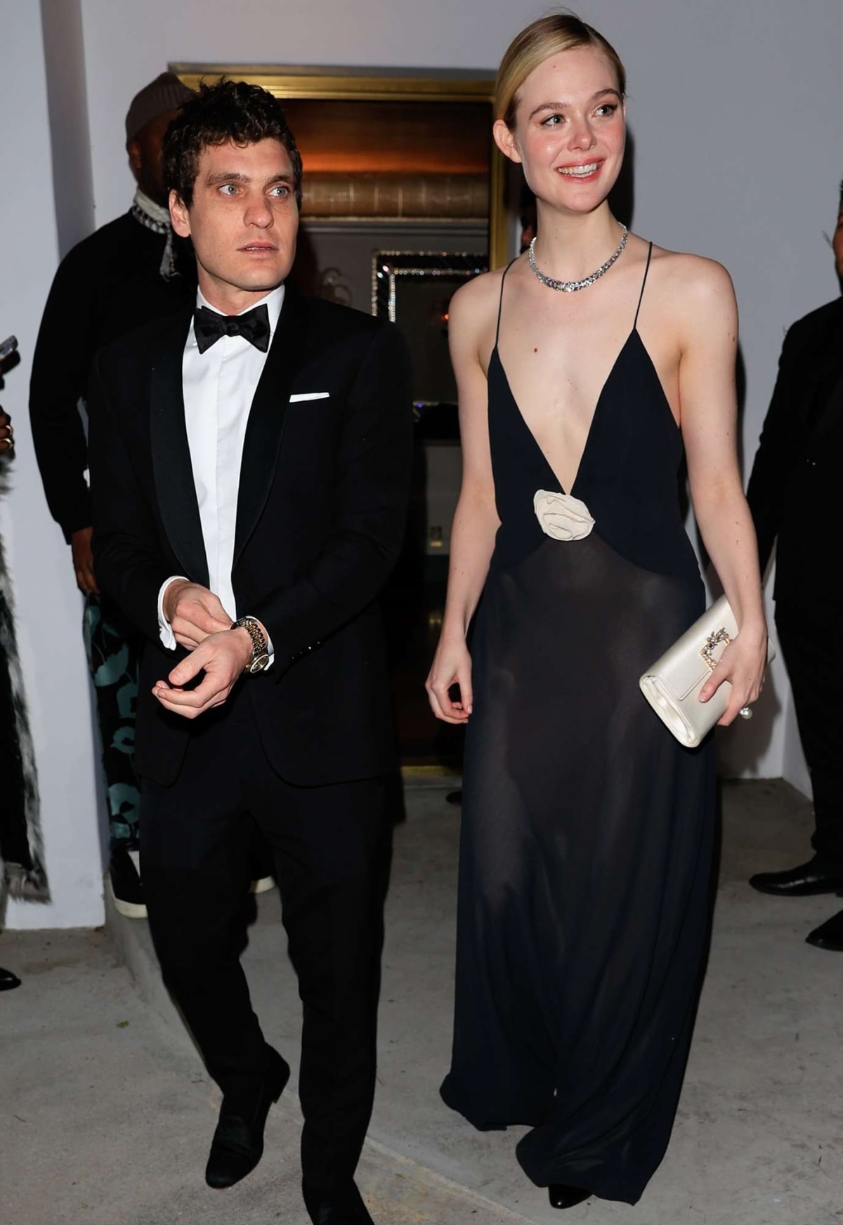Diễn viên Elle Fanning diện đồ thanh lịch và đơn giản mỗi lần sánh đôi giám đốc tạp chí Rolling Stones - Gus Wenner.