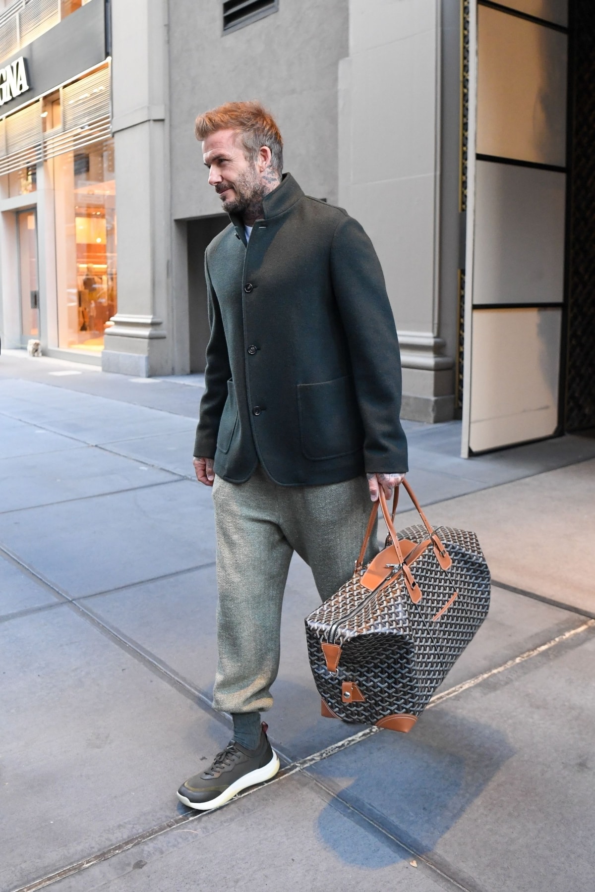 Ngoài Hermes và Louis Vuitton, David Beckham còn sắm nhiều chiếc của Goyard, trong đó có Bowling 55. Trên sàn đồ cũ StockX, một chiếc như vậy được bán với giá 6.499 USD (gần 170 triệu đồng). Theo Vogue, túi Goyard đã trở thành món đồ được giới thượng lưu săn lùng, quý giá không kém Hermès Birkin. Ảnh: GC Images