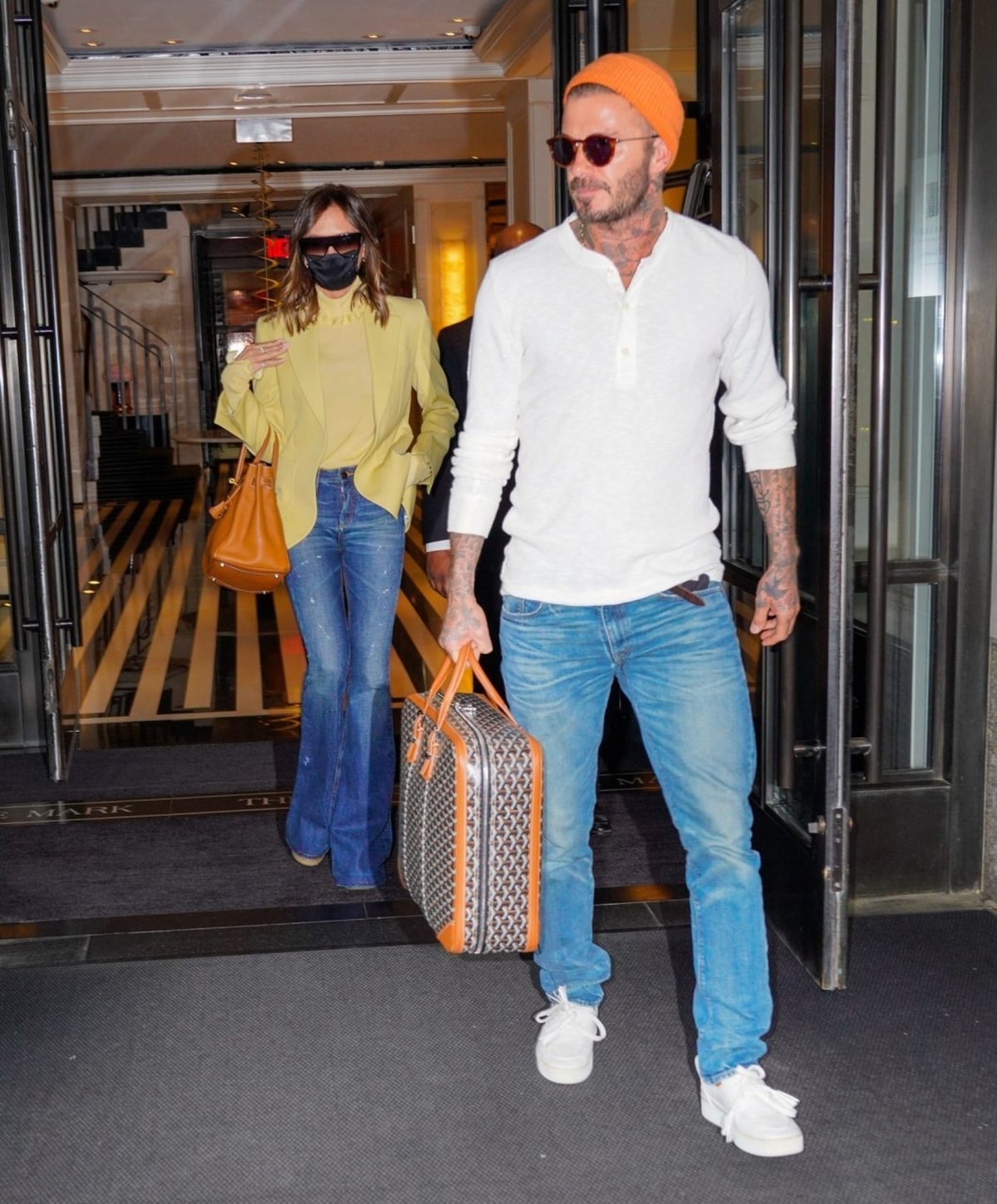Nhiều năm qua, Beckham thường xuyên áp dụng công thức mặc đồ đơn giản, dùng túi xa xỉ cỡ lớn làm điểm nhấn. Anh thích sưu tầm các mẫu của Hermes, Louis Vuitton. Trong một lần xuất hiện trên phố, anh mặc cả bộ denim thuộc bộ sưu tập Thu Đông 2024 của Loro Piana, xách túi Hermès Haut à Courroies hàng chục nghìn USD được làm từ vải toile, với các chi tiết bằng da màu nâu vàng và phụ kiện mạ palladium. Chiếc Haut à Courroies, còn gọi là HAC, được bán lần đầu tiên vào năm 1892 và được thiết kế để đựng các dụng cụ cưỡi ngựa. Ảnh: GC Images