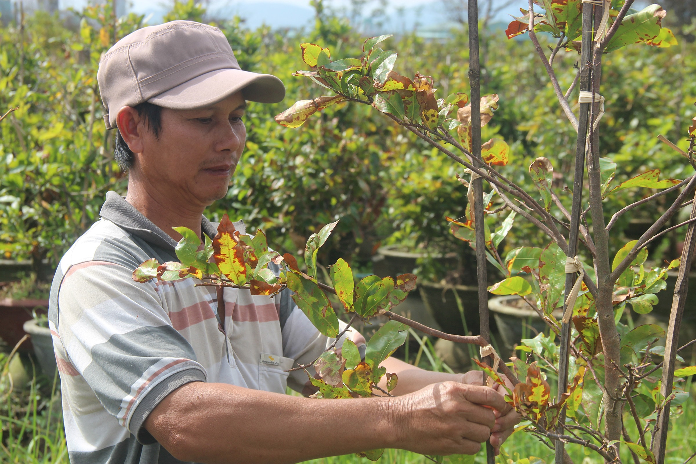 Hàng chục nghìn gốc mai Tết ở An Nhơn bị cháy lá, hư rễ sau bão Kalmaegi, nhiều chủ vườn thiệt hại hàng tỷ đồng, rơi vào tình cảnh khốn đốn.