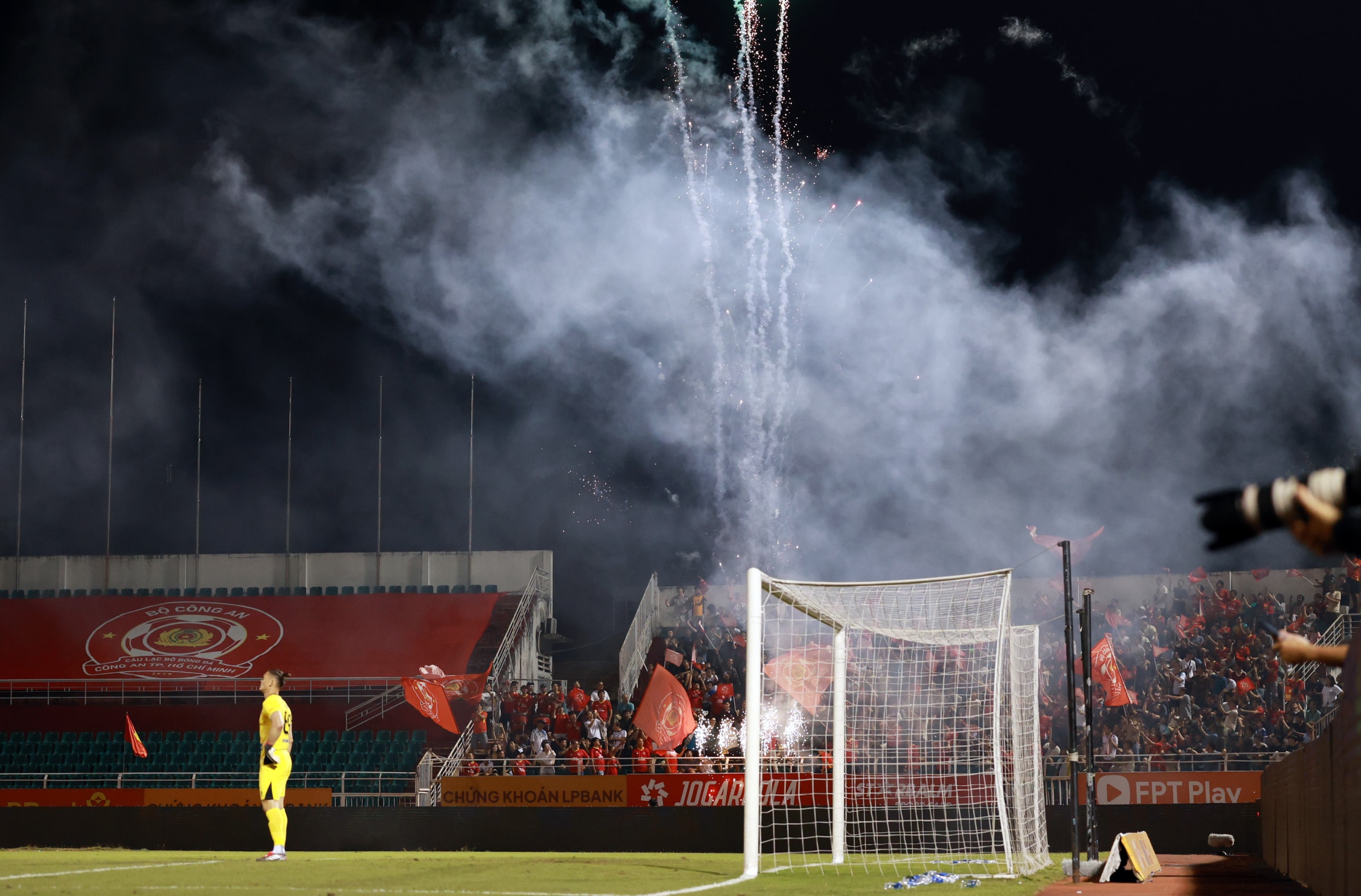 Trên sân Thống Nhất tối 20/3, Công an TP HCM tiếp Trường tươi Đồng Nai ở tứ kết Cup Quốc gia.