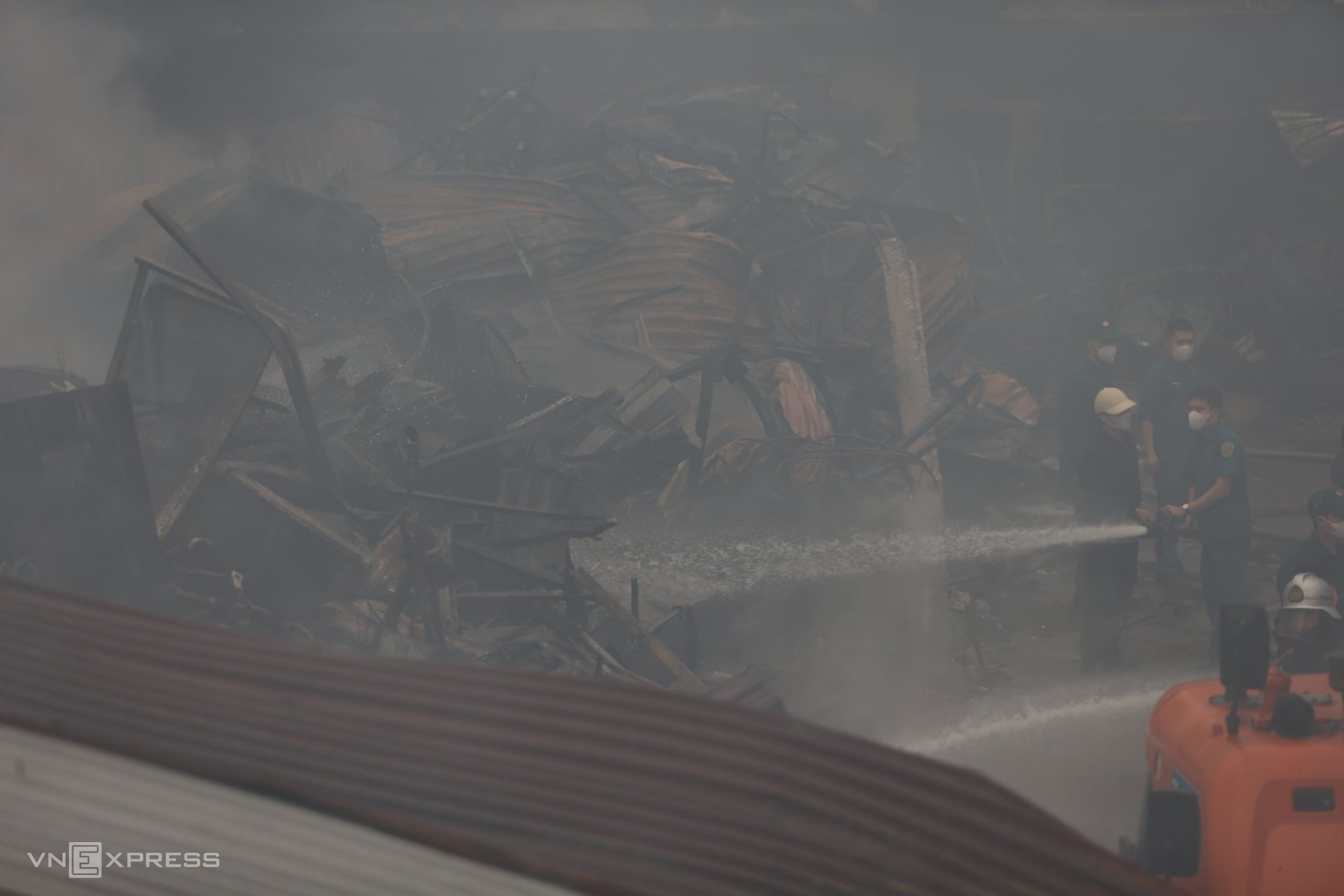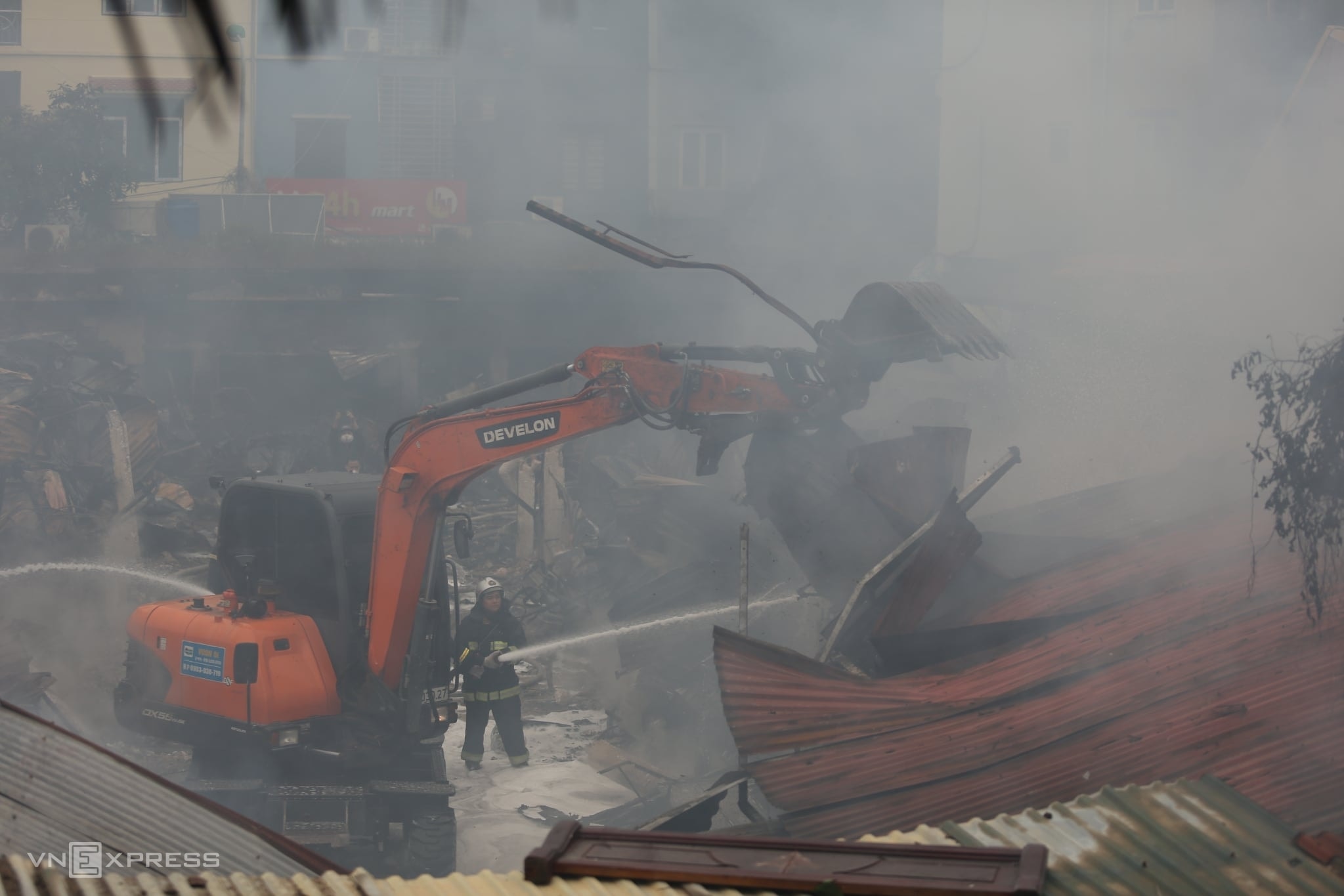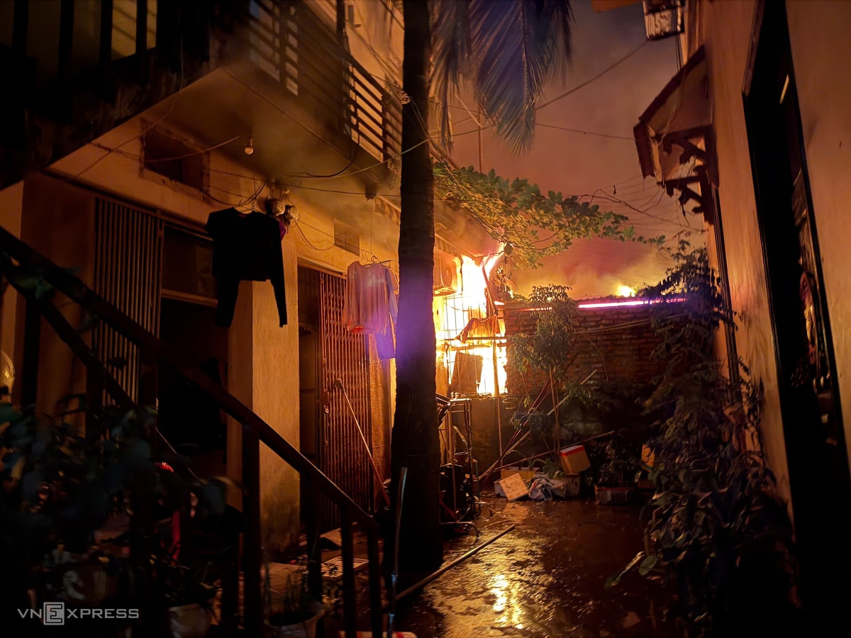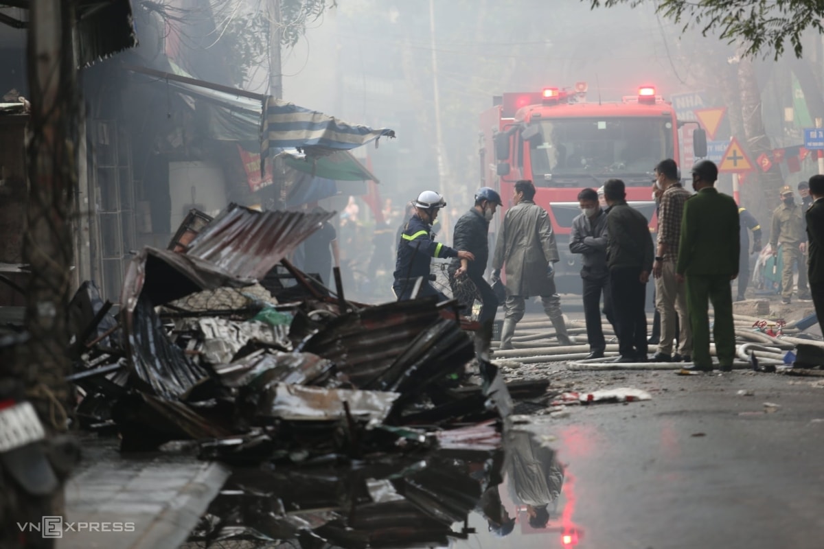Hỏa hoạn bùng phát khi trời chưa sáng, nhiều ki-ốt trong chợ Xanh Định Công bị lửa bao trùm, tiểu thương đứng bên ngoài bất lực nhìn tài sản tích cóp nhiều năm có nguy cơ mất trắng.