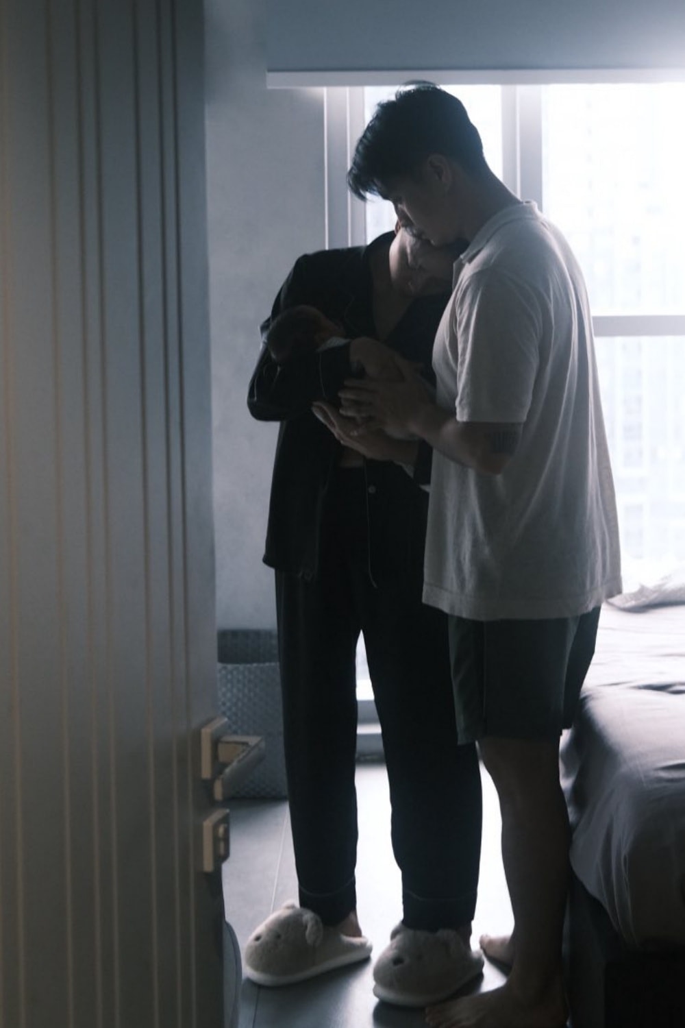 Huy Trần vừa ru con ngủ, vừa viết kịch bản quay vlog ẩm thực. Ngô Thanh Vân nói không chỉ chăm con giỏi, Huy Trần còn vào bếp, áp dụng nhiều chế độ dinh dưỡng, giúp cô phục hồi sức khỏe sau sinh.