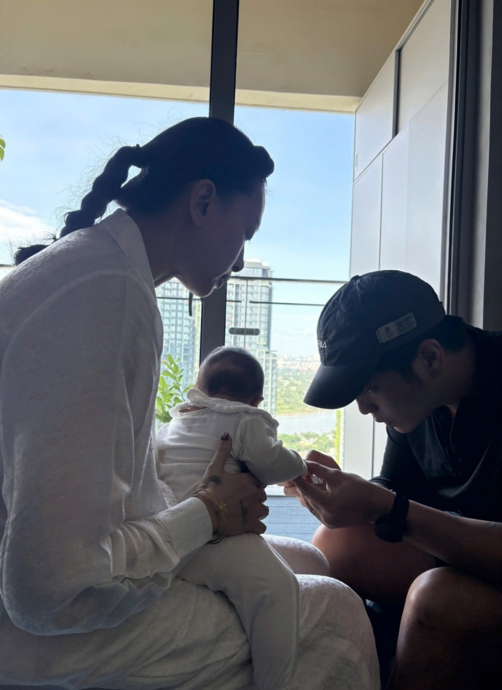 Sau bốn tháng sinh con, đến nay, Ngô Thanh Vân cho biết nhiều hôm, cô và chồng - doanh nhân Huy Trần - đuối khi thay phiên nhau chăm bé Gạo."Bù lại, nhìn con cười là mệt mỏi tan biến. Hạnh phúc không phải lúc nào cũng rực rỡ, đôi khi chỉ là một hơi thở, một cái ôm của con", cô nói.