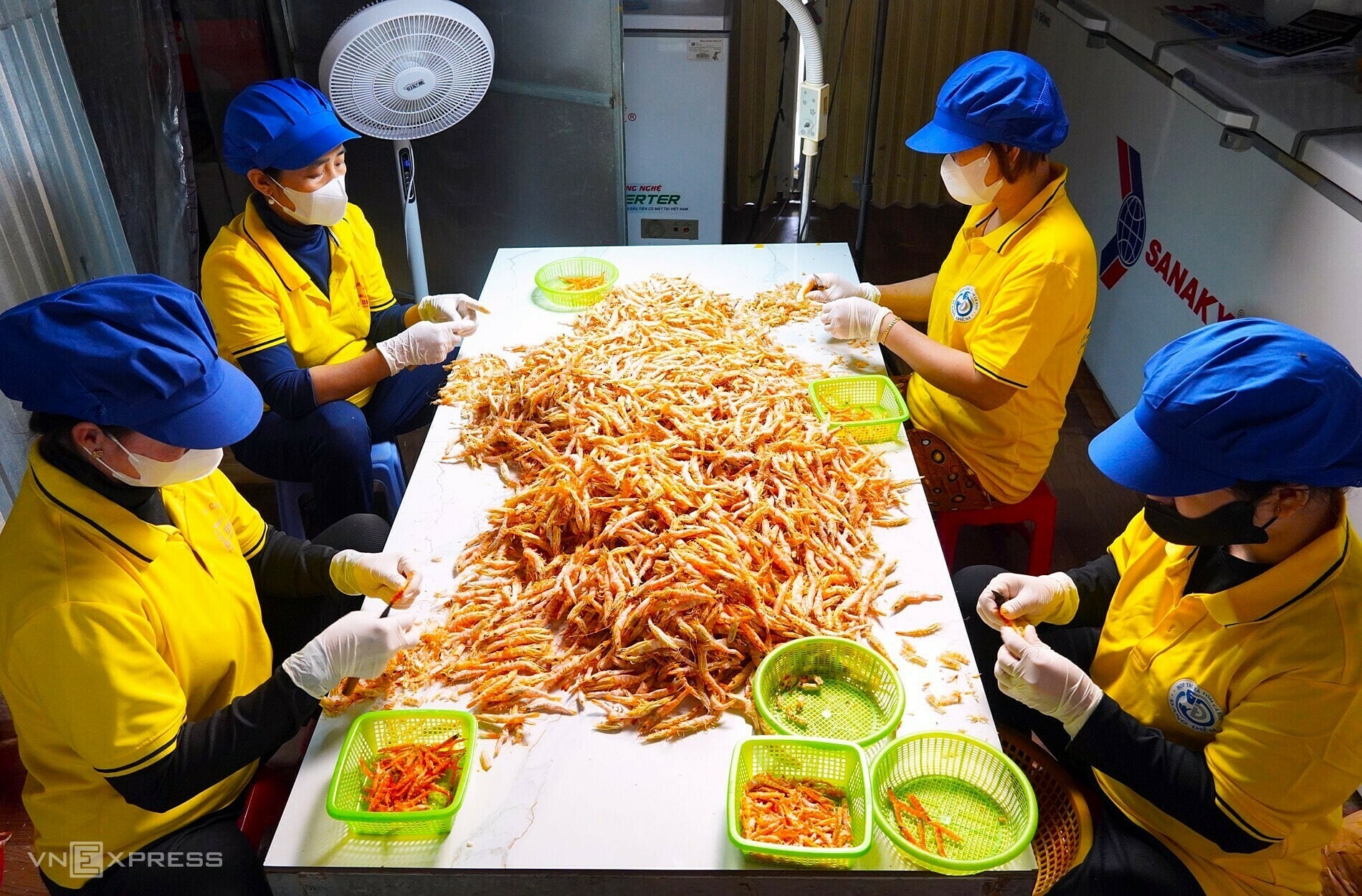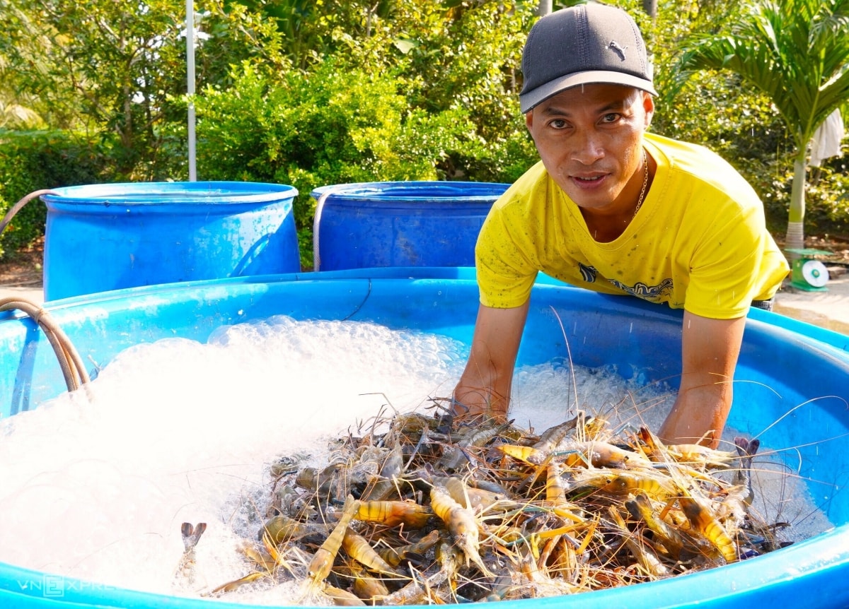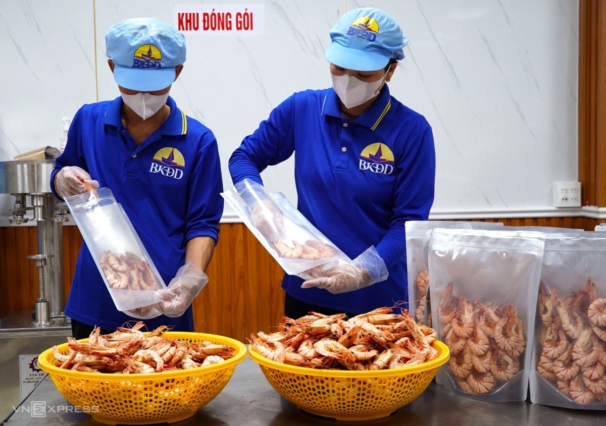 Tôm sẽ được luộc, sấy, đập, tách vỏ và phơi khô. Tôm khô đất có hai loại tách và nguyên vỏ, hiện có giá bán từ khoảng 1,5–2,2 triệu đồng mỗi kg, cao hơn năm rồi khoảng 200.000 đồng.