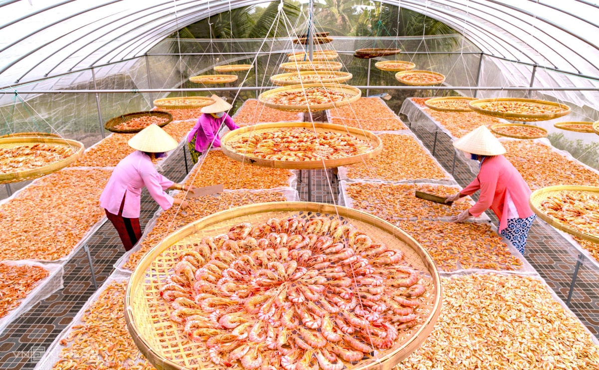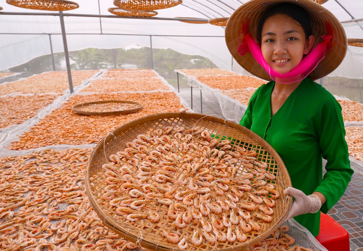 Những ngày cận Tết, các làng nghề tôm khô ở Cà Mau tăng công suất để kịp cung ứng thị trường. Sản phẩm được khách hàng khắp cả nước đặt mua làm quà biếu, dùng trong mâm cỗ ngày xuân.