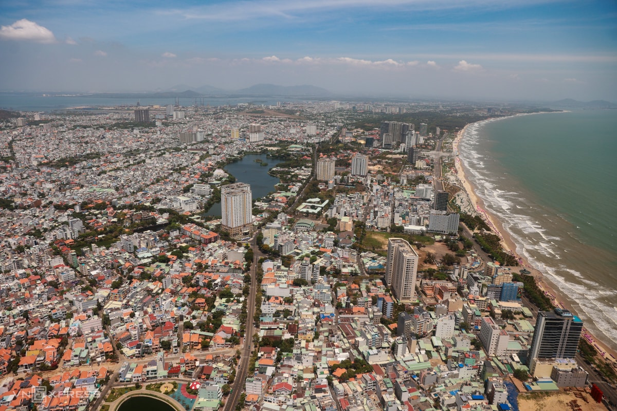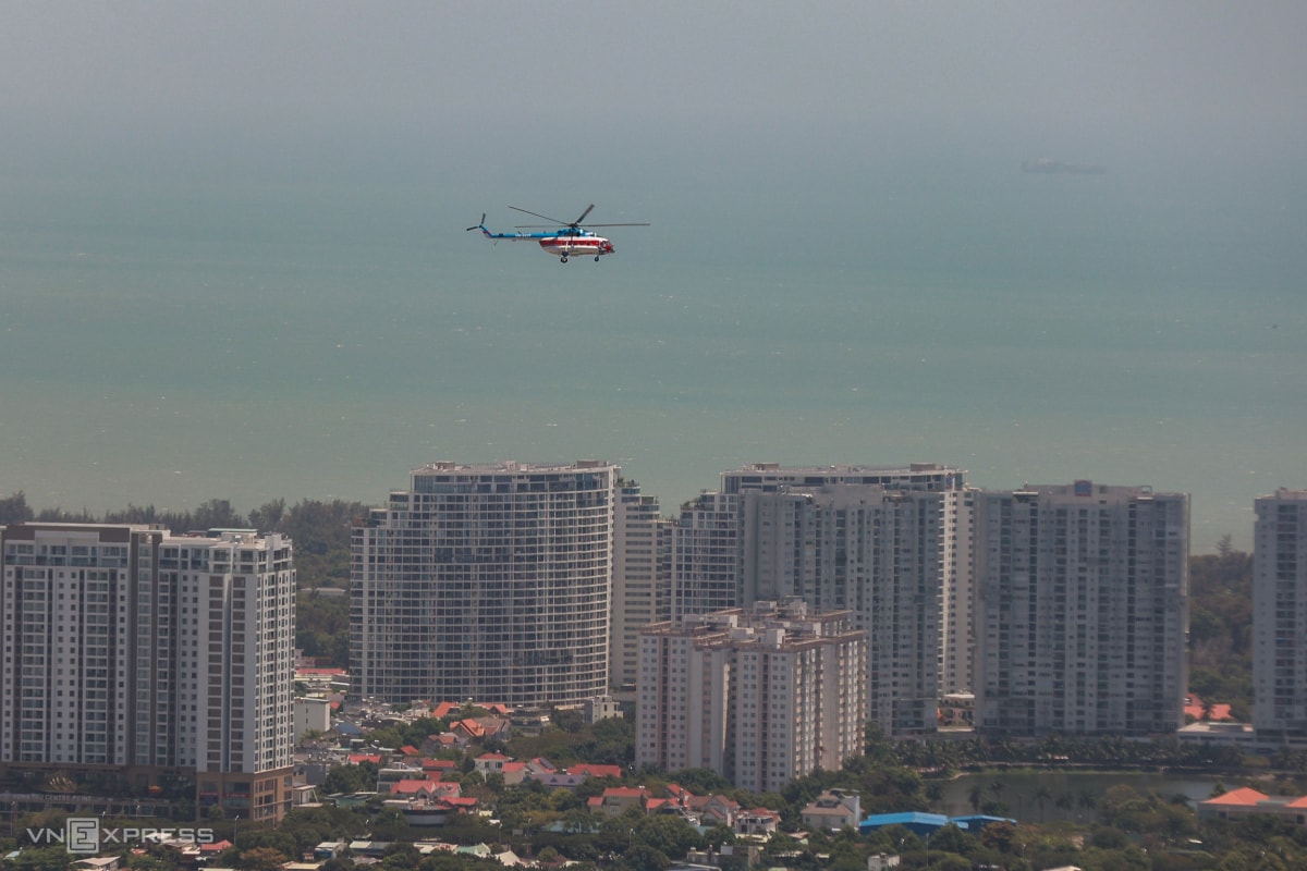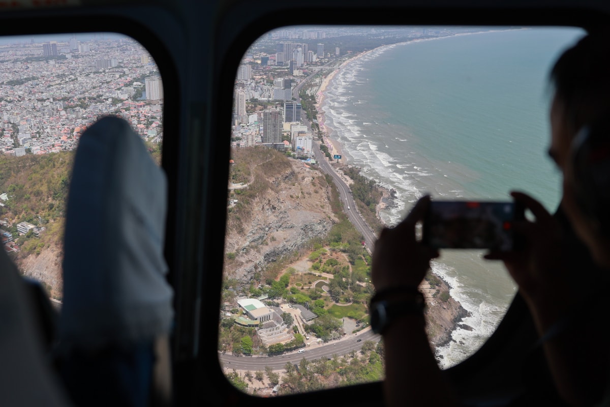 Khu vực trung tâm Vũng Tàu và bãi biển nhìn từ máy bay. Tại mỗi danh thắng, đều có loa giới thiệu khi trực thăng đi qua.