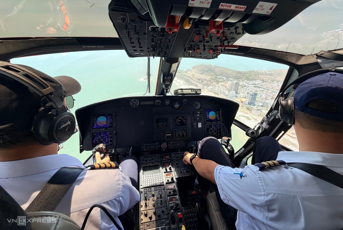 Trong 15 phút, trực thăng bay vòng quanh khu vực thành phố Vũng Tàu cũ, bãi trước, bãi sau, biển Long Hải, đảo Long Sơn... Các cửa kính được thiết kế có kích thước lớn và trong giúp khách dễ quan sát.