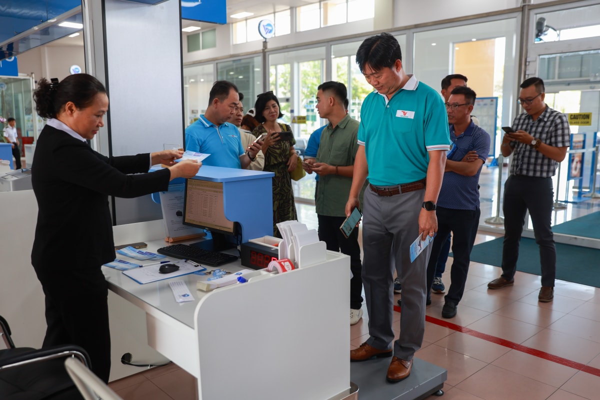 Các hành khách làm thủ tục soi chiếu an ninh và cân tổng trọng lượng (cơ thể và hành lý), nhằm bảo đảm tải trọng phù hợp cho từng chuyến bay. Thời gian làm thủ tục khoảng 15 phút. Mỗi khách được in vé có đầy đủ thông tin chuyến bay, giờ khởi hành, số ghế.