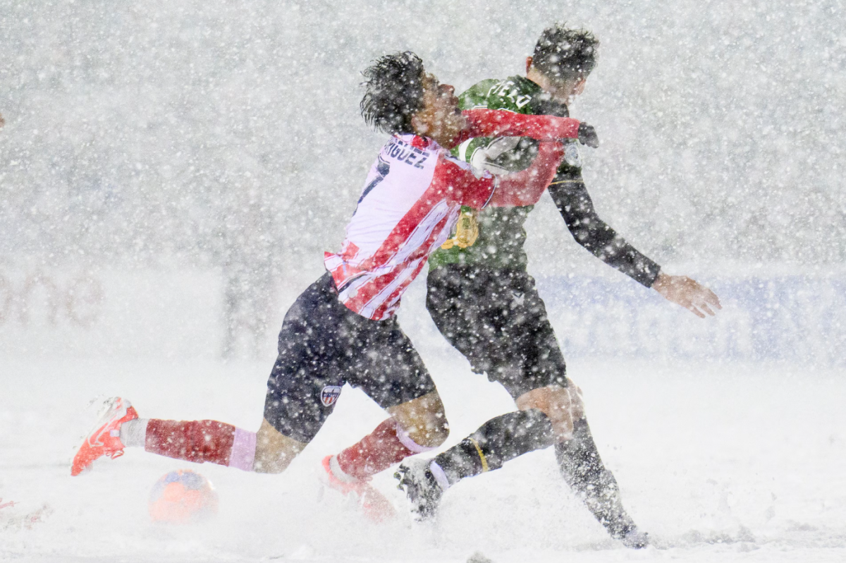 Một trận chung kết bóng đá trong bão tuyết - đó là khung cảnh không tưởng tại sân TD Place, thủ đô Ottawa, nơi hàng nghìn khán giả đội tuyết cổ vũ cho trận chung kết Ngoại hạng Canada. Bị dẫn trước, Atletico Ottawa vẫn lội ngược dòng ngoạn mục để thắng 2-1 sau 120 phút thi đấu dưới điều kiện khắc nghiệt.