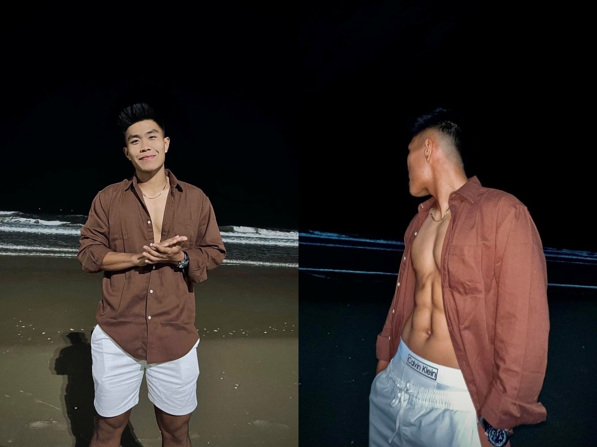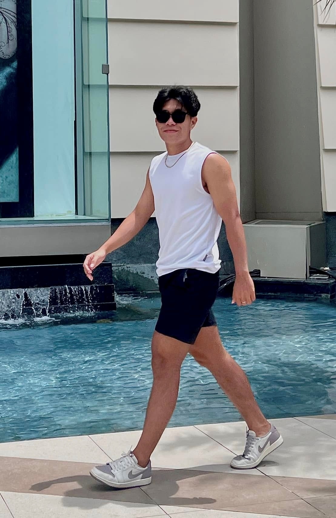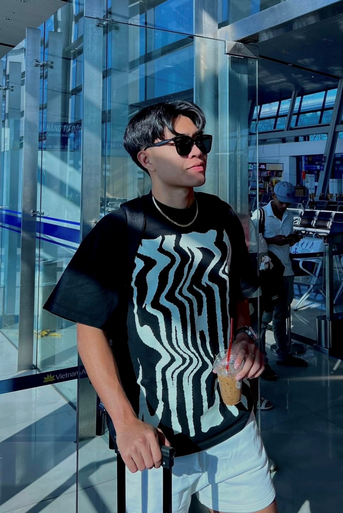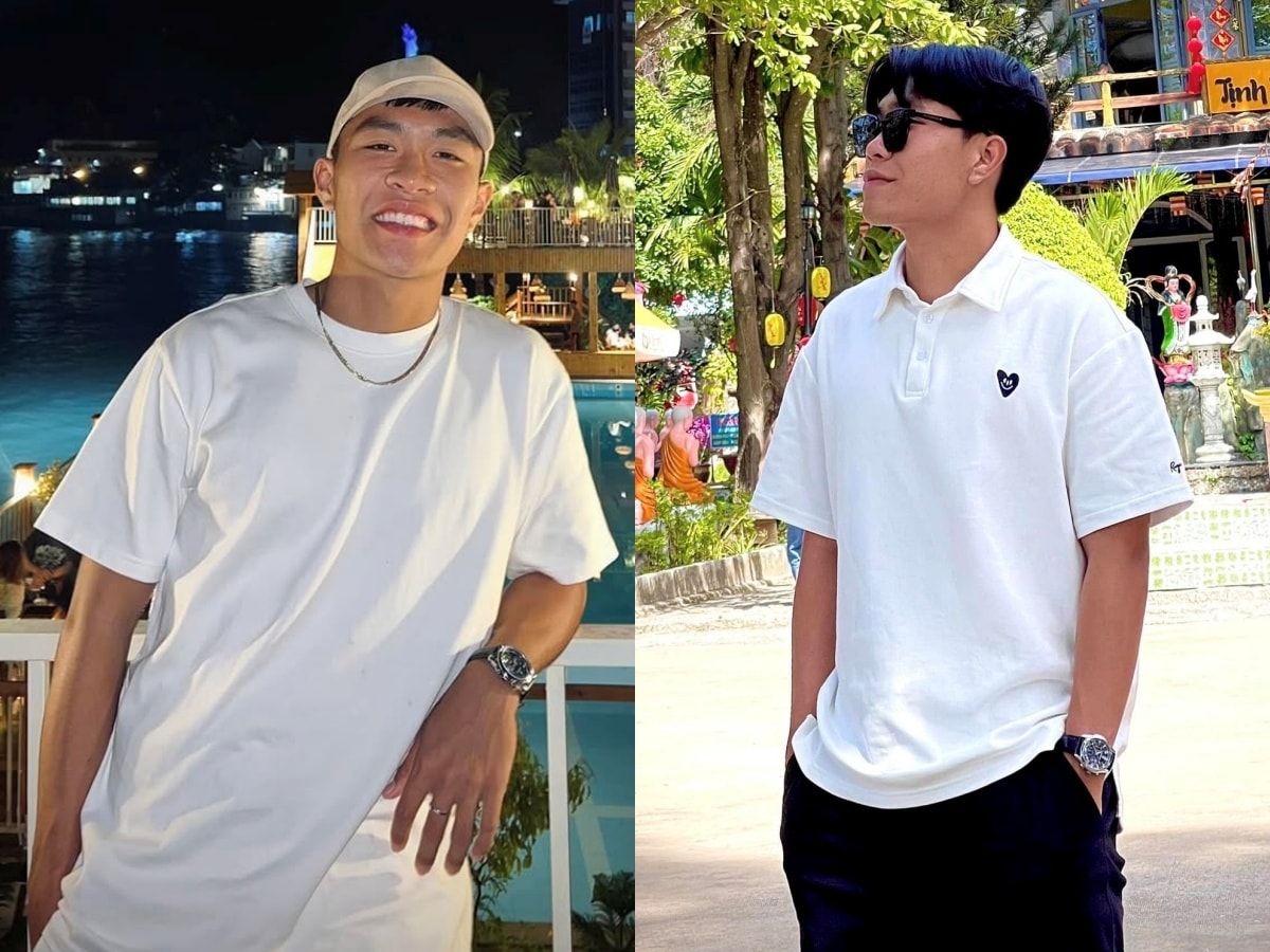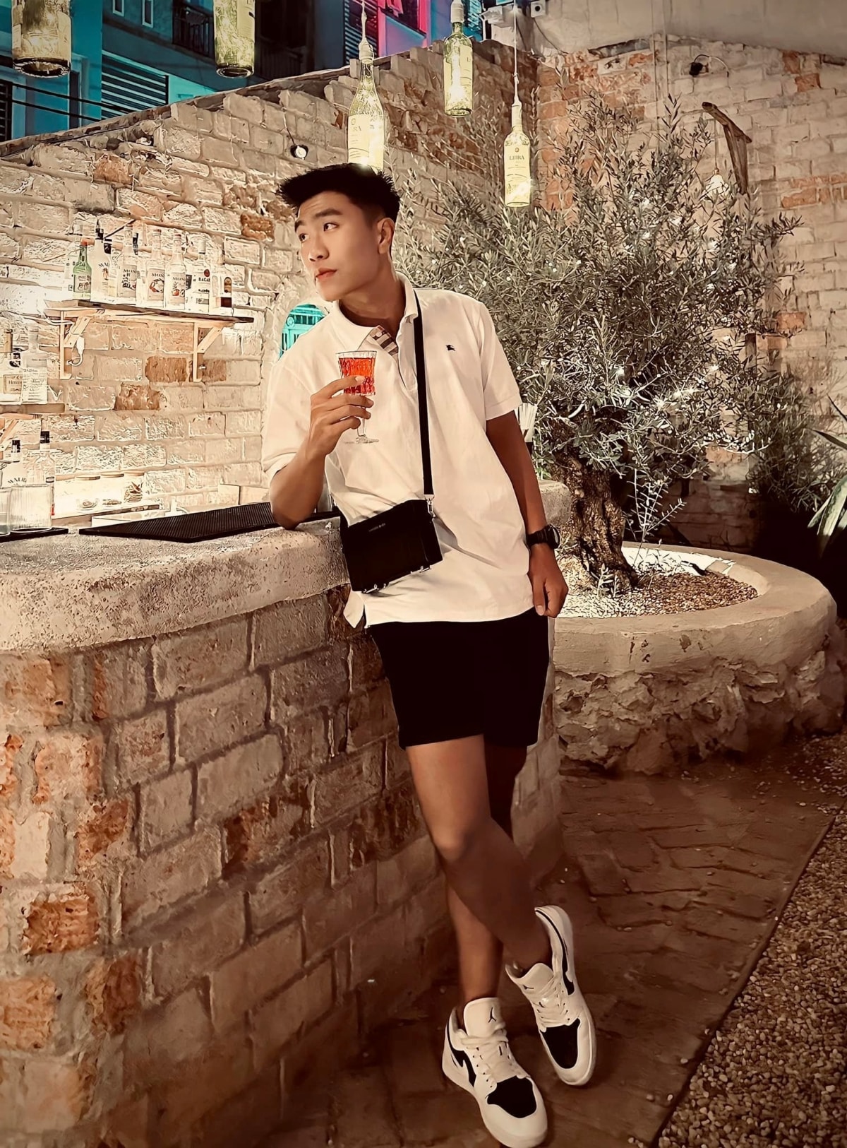 Trung vệ tuyển U23 Phạm Lý Đức thường phối trang phục tối giản với gam màu đen, trắng chủ đạo.