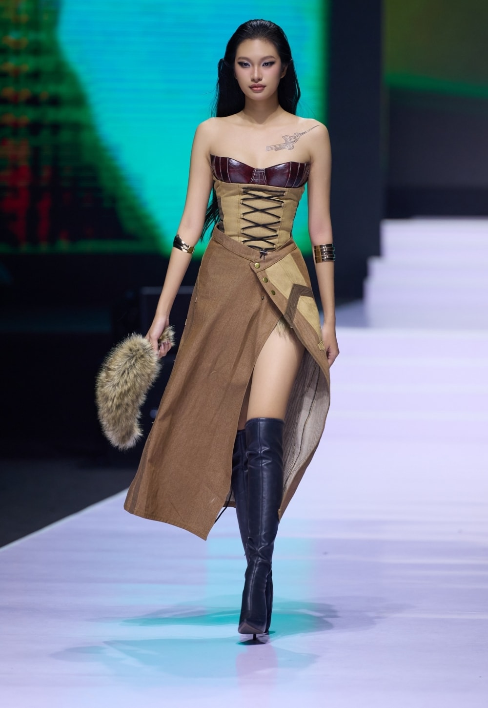 Nhà thiết kế gen Z Phạm Trần Thu Hằng giới thiệu bộ sưu tập lấy cảm hứng từ văn hóa Đông Sơn, pha trộn phong cách nổi loạn.