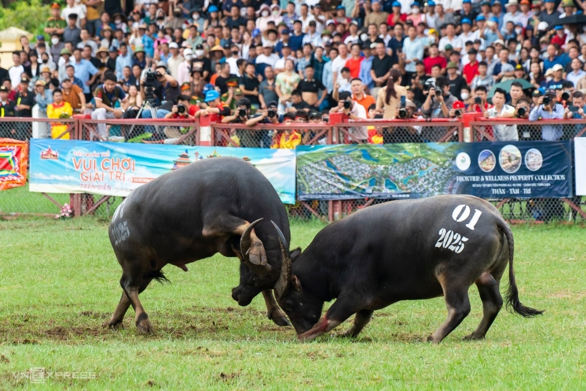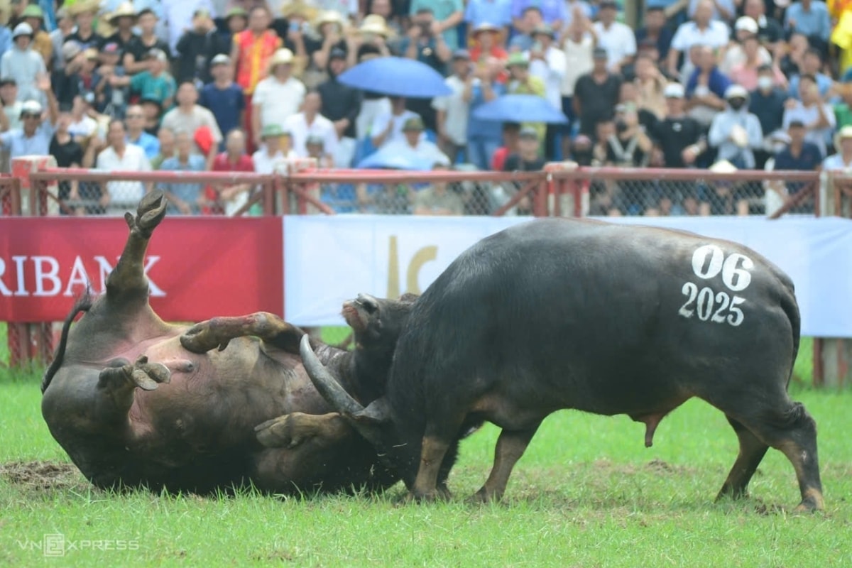 Với những đòn đánh cáng hiểm hóc, trâu số 06 của nghệ nhân Đinh Đình Phú (91 tuổi, phường Đồ Sơn) đã vô địch lễ hội chọi trâu Đồ Sơn năm 2025.