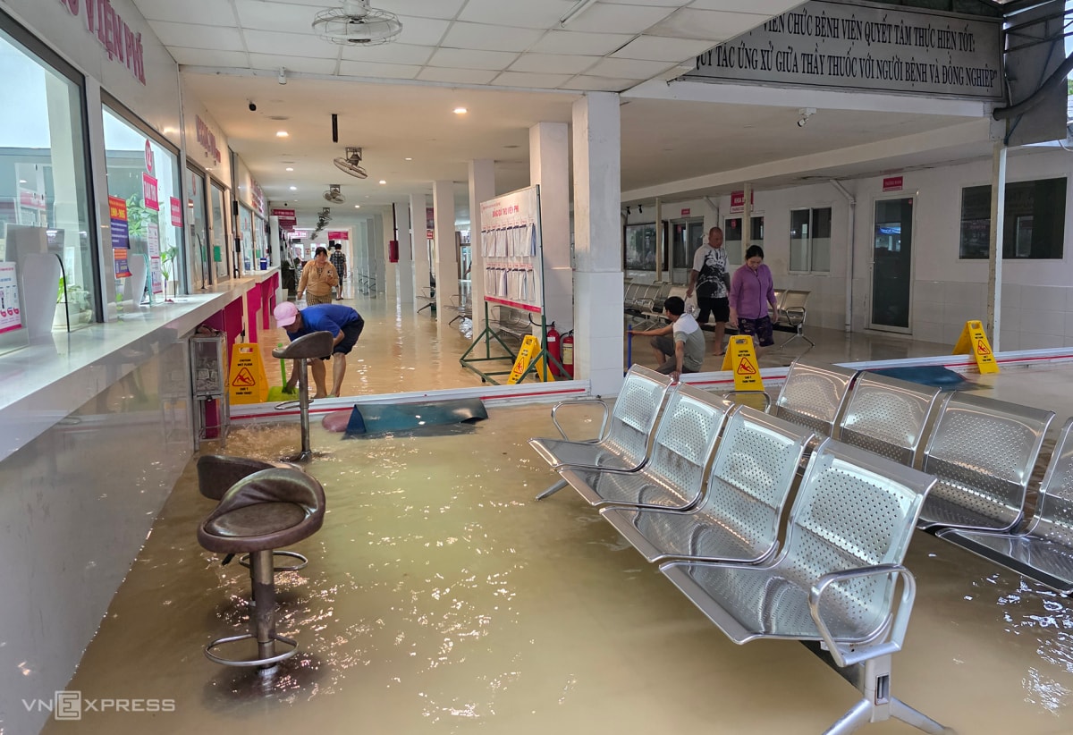 Nước tràn vào bệnh viện trên địa bàn phường Cái Khế, TP Cần Thơ.