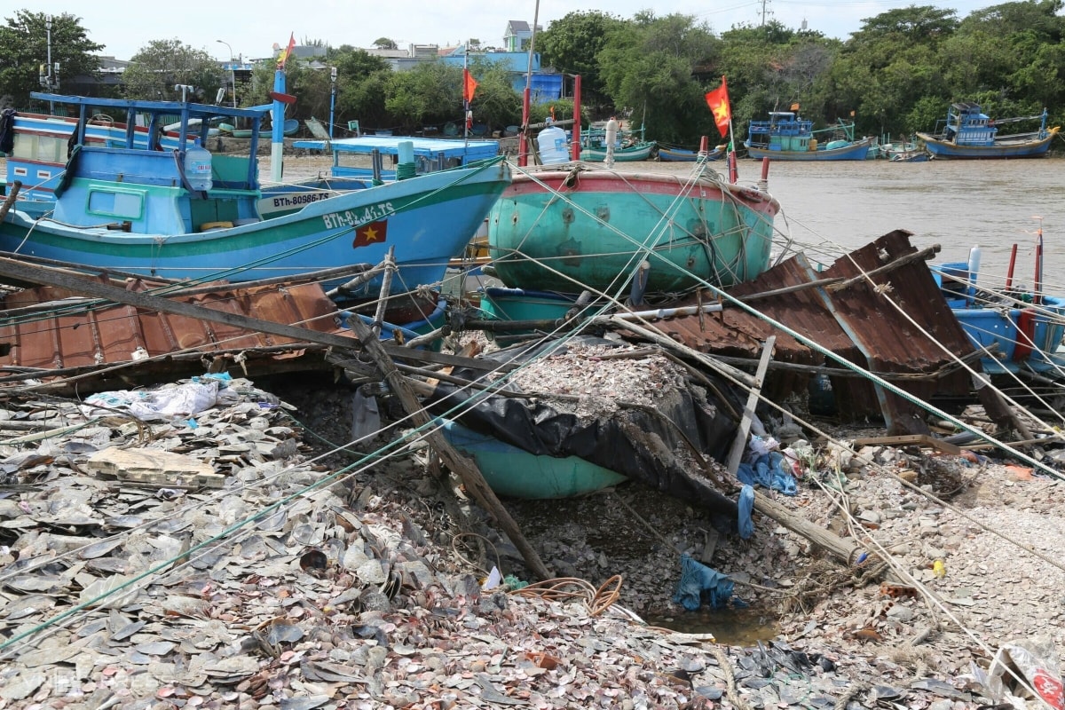 Theo UBND xã Liên Hương, toàn xã có hơn 24 tàu chìm, 30 tàu đứt neo trôi ra biển và nhiều tàu va đập hư hỏng.