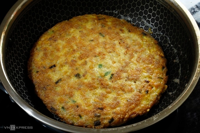 - Rán trứng ở lửa vừa để chín đều. Khi thấy rìa mép hơi xém vàng, bông xốp là đạt độ ngon. Không rán to lửa khiến bên ngoài khô cứng mà bên trong chưa kịp chín.