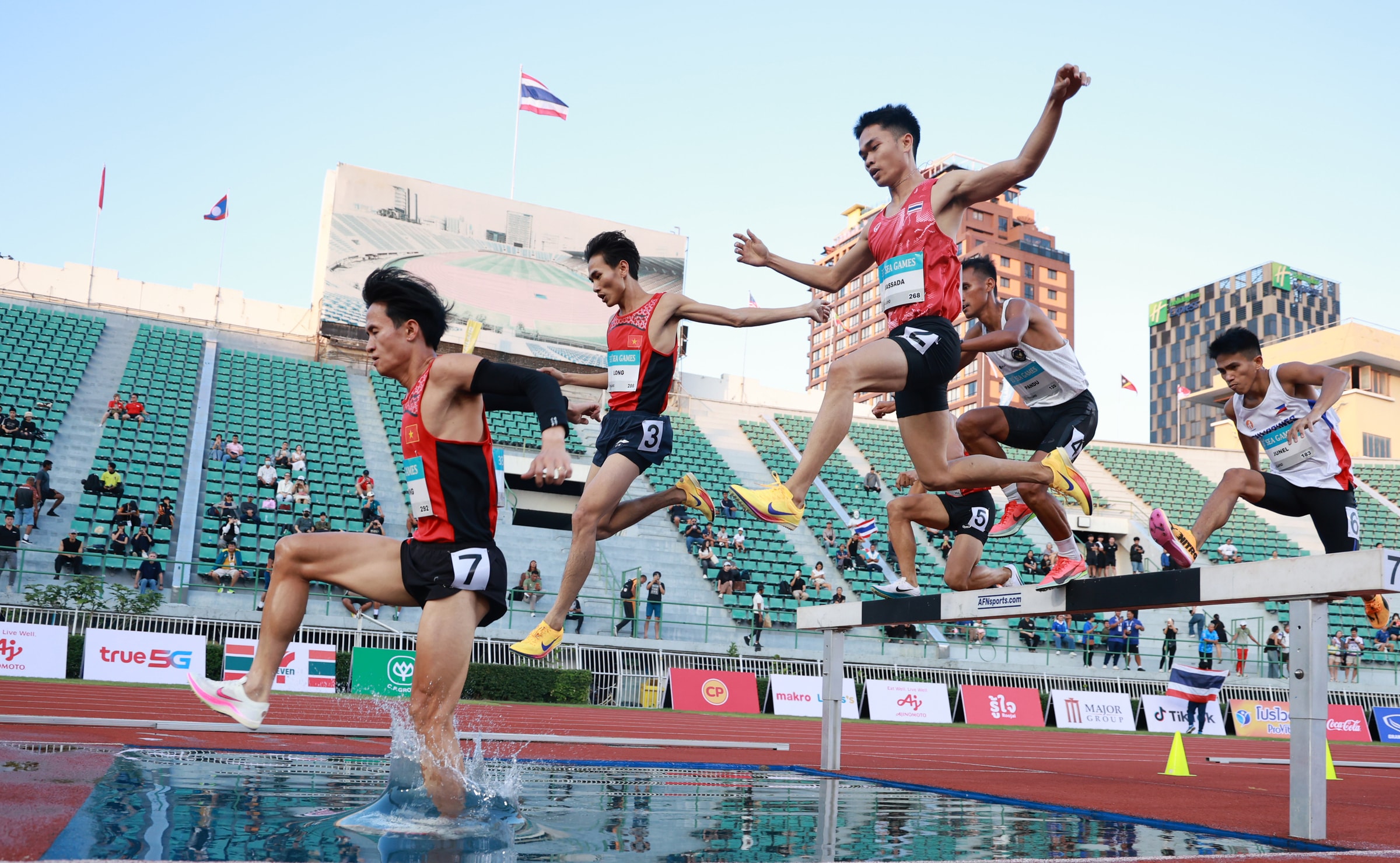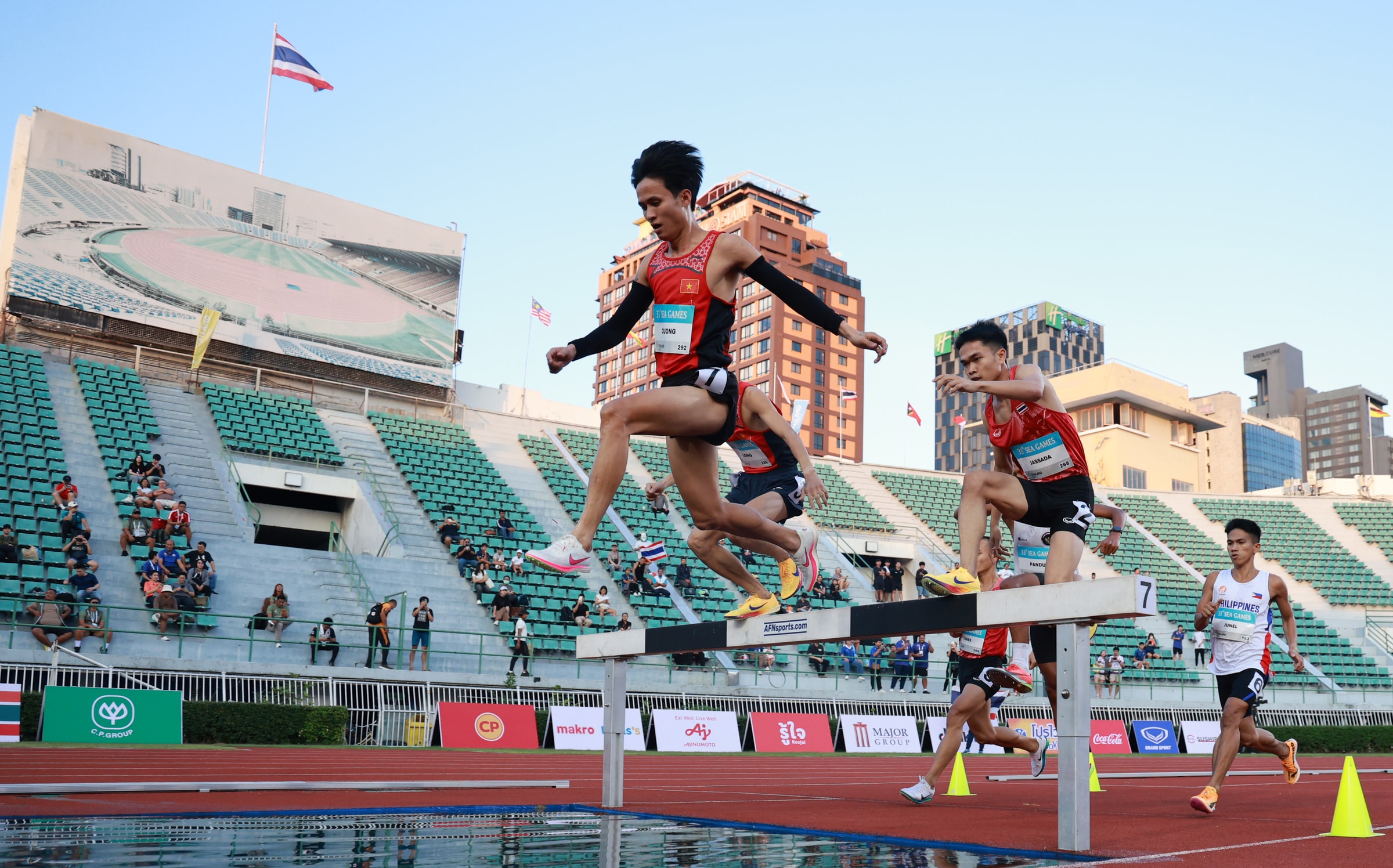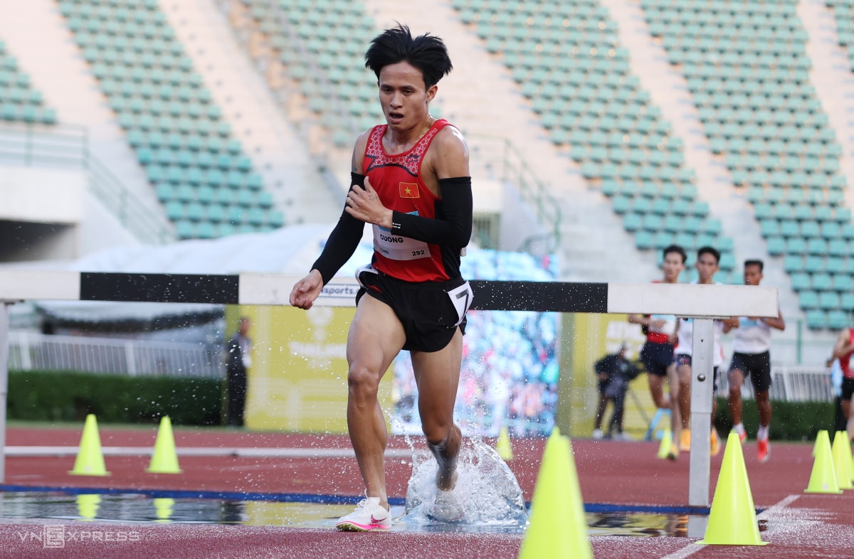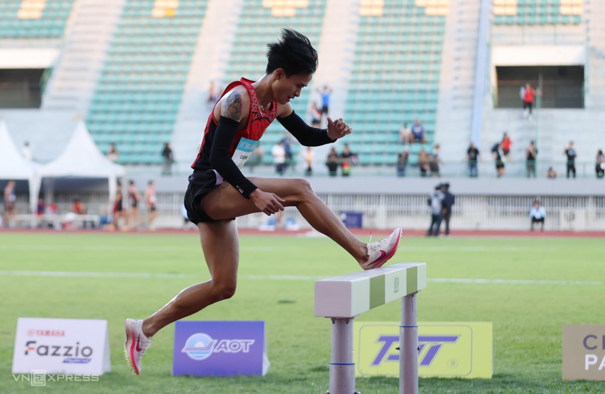 Phần thi 3000m vượt chướng ngại vật của Trung Cường chiều 15/12.
