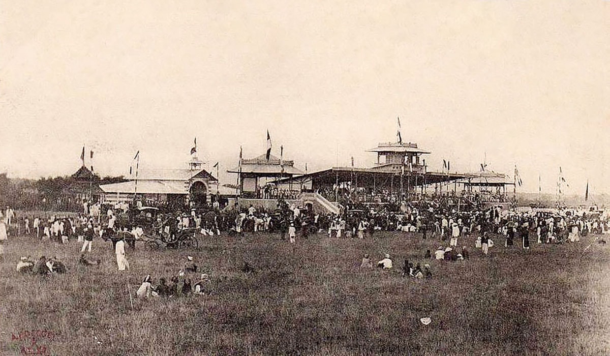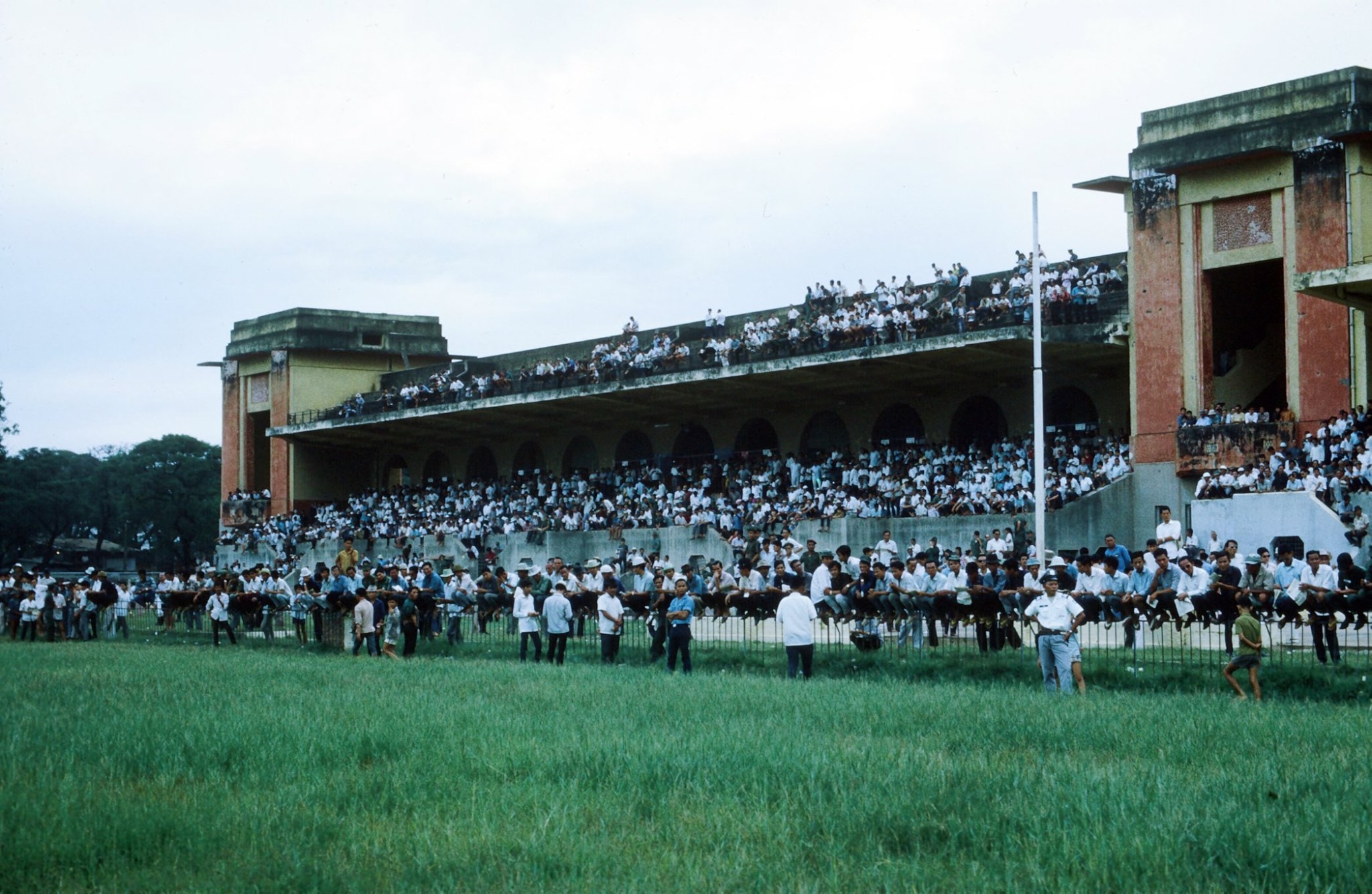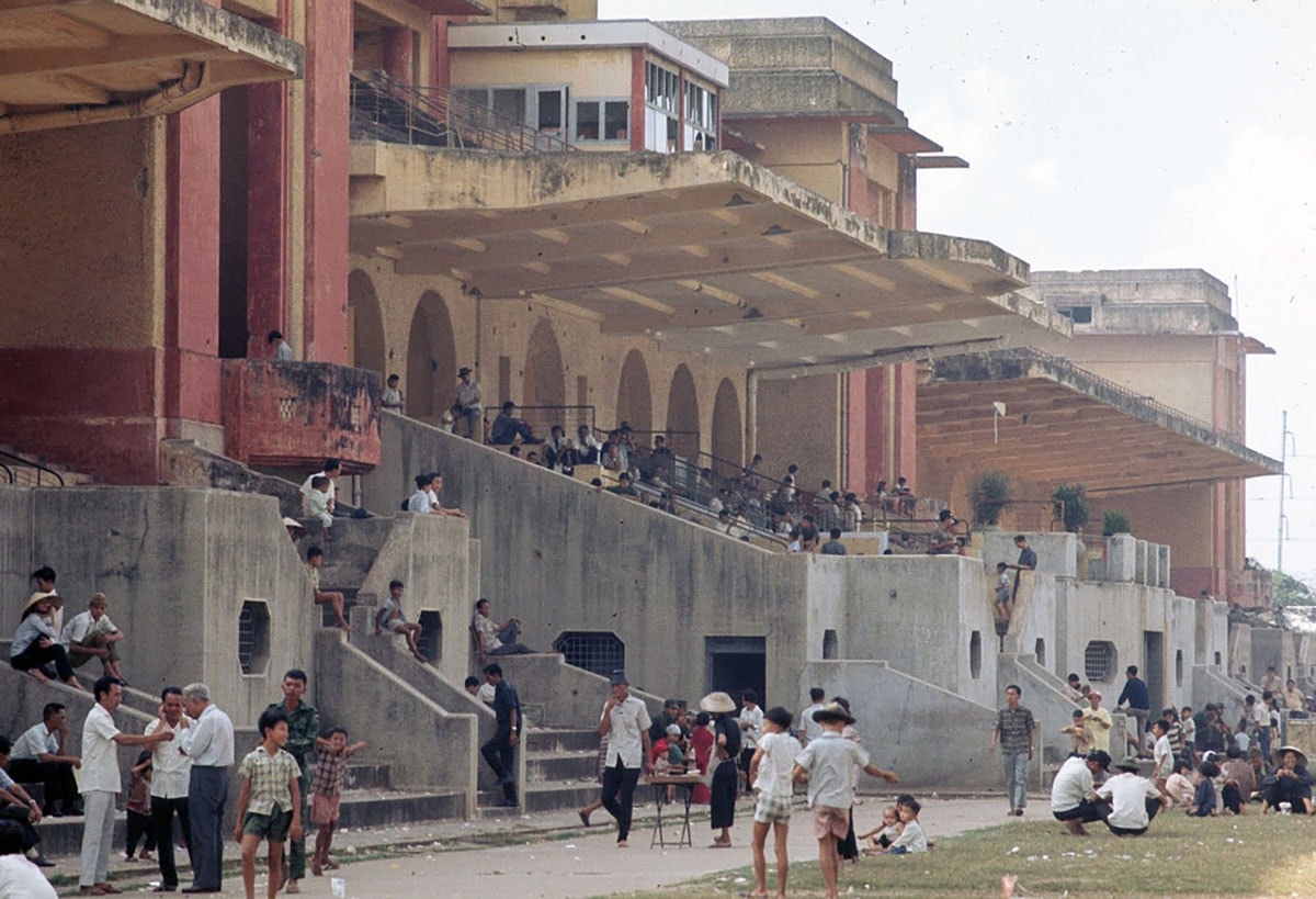 Quang cảnh khán đài trường đua Phú Thọ những năm đầu hoàn thành và năm 1969. Trong tác phẩm Ở theo thời viết năm 1935, nhà văn Hồ Biểu Chánh đã miêu tả cảnh nhộn nhịp nơi đây: "Khi ra gần tới trường đua thì gặp xe hơi, xe ngựa, xe máy chật đường, rồi tới cửa thì thấy thiên hạ chen nhau mua giấy mà vô nườm nượp".