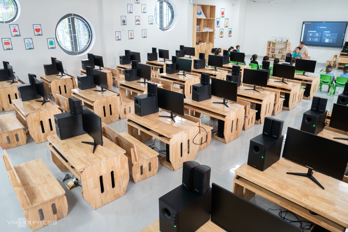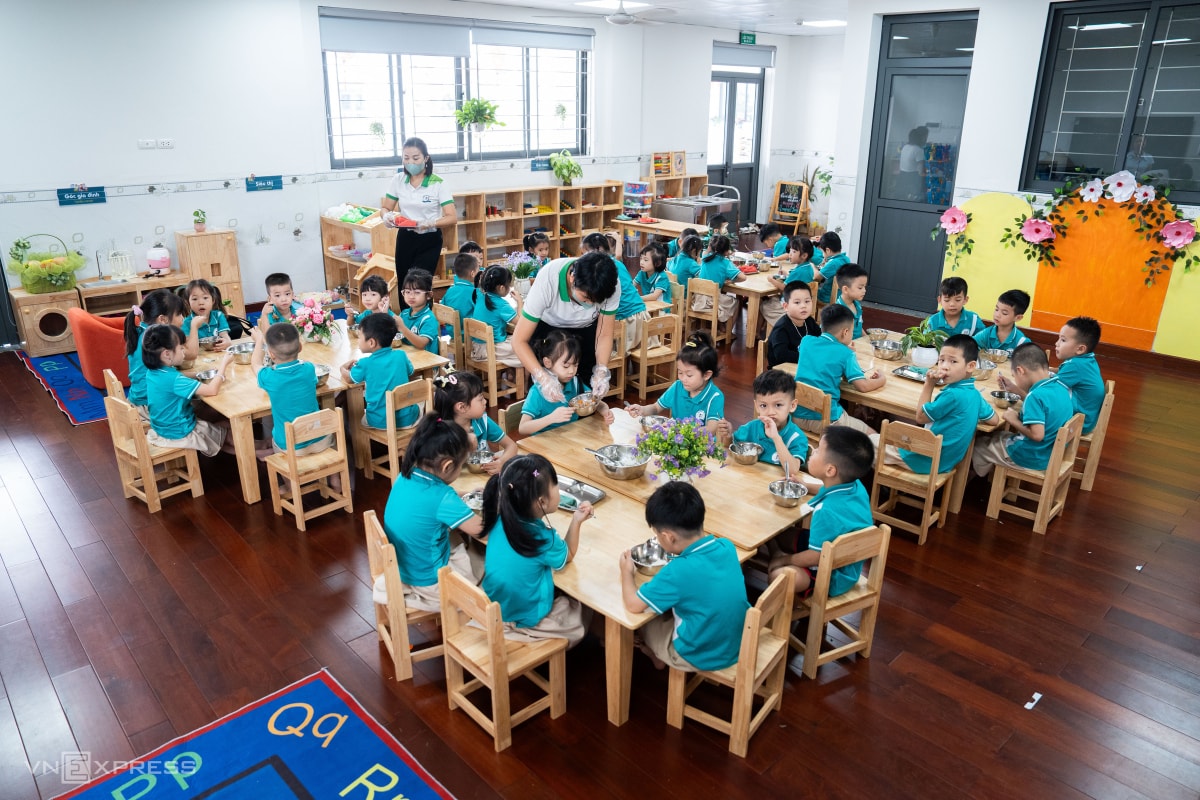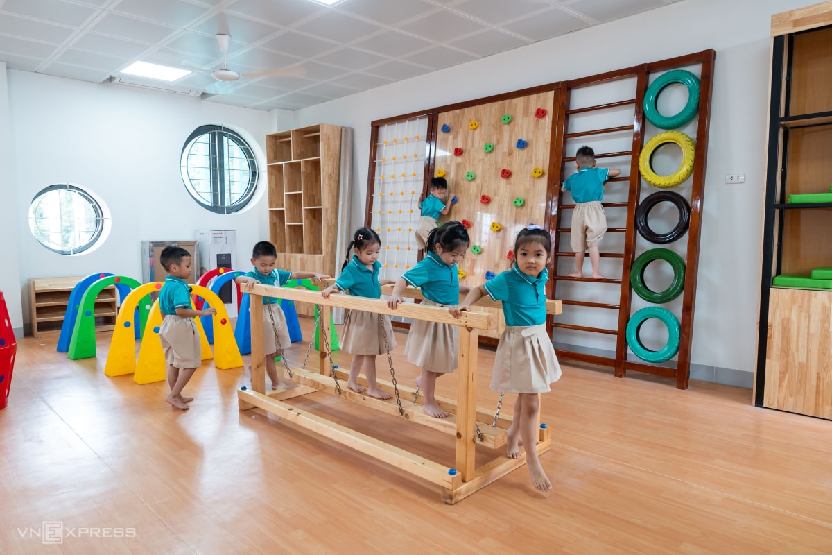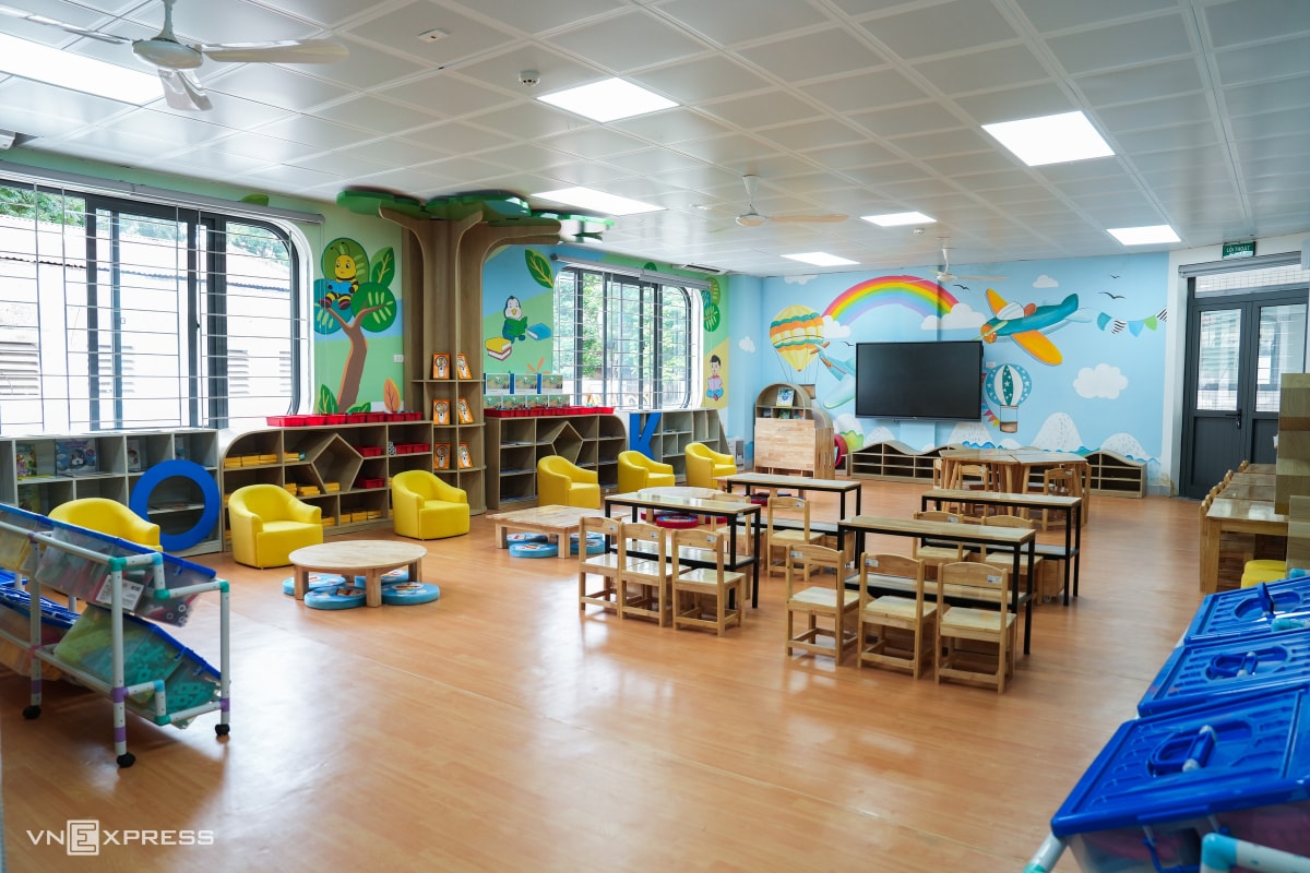 Nằm ở nơi từng phải bốc thăm để chọn học sinh, trường Mầm non Ánh Sao có kiến trúc hình trôn ốc độc đáo, nhiều phòng chức năng như nghệ thuật, tin học, thể chất..., tổng đầu tư 135 tỷ đồng.