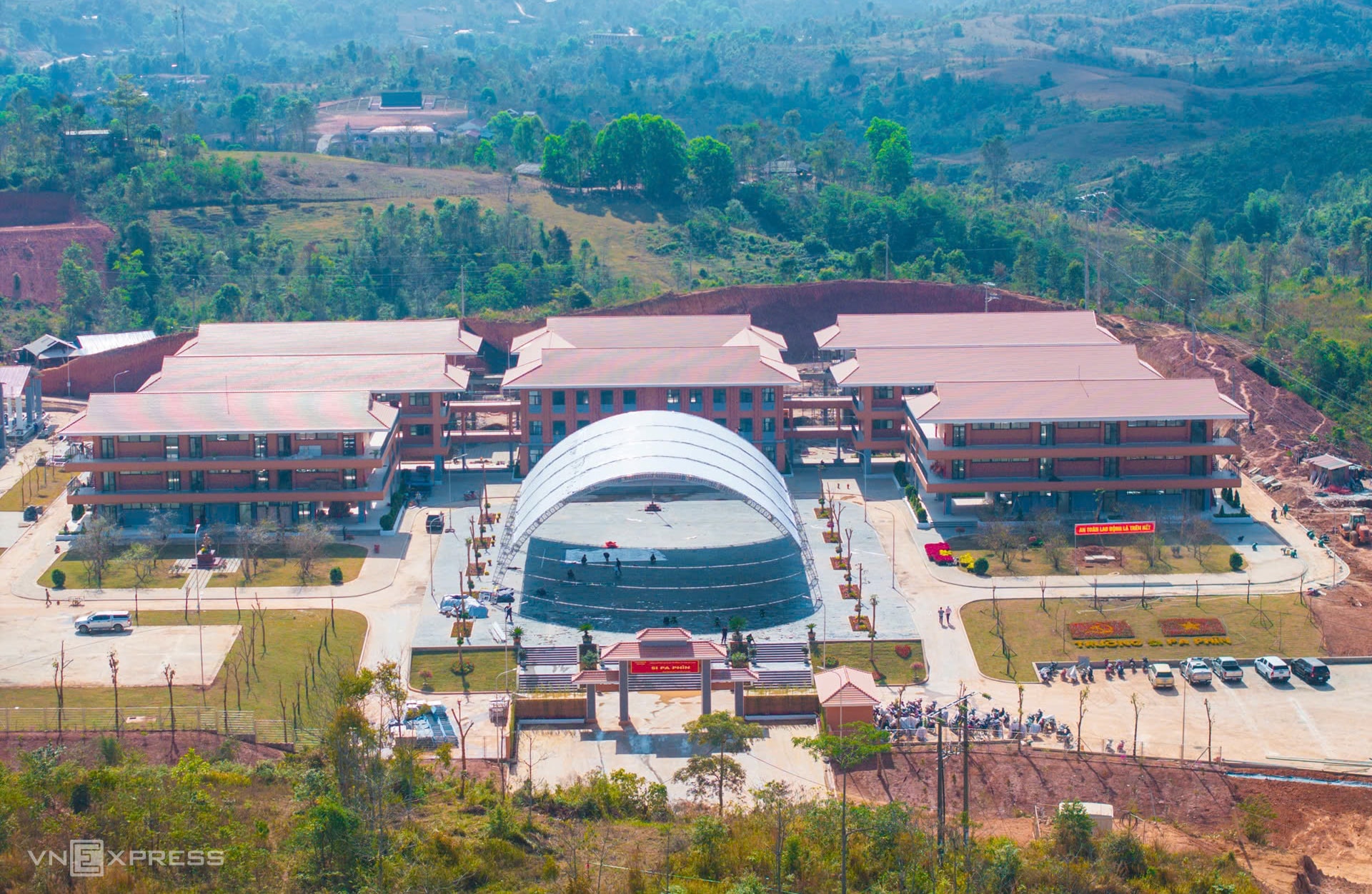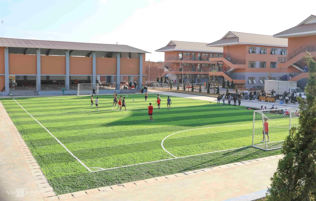 Với vốn đầu tư 220 tỷ đồng, trường phổ thông nội trú liên cấp Si Pa Phìn có sân bóng, bể bơi..., được coi là kiểu mẫu ở vùng biên giới.