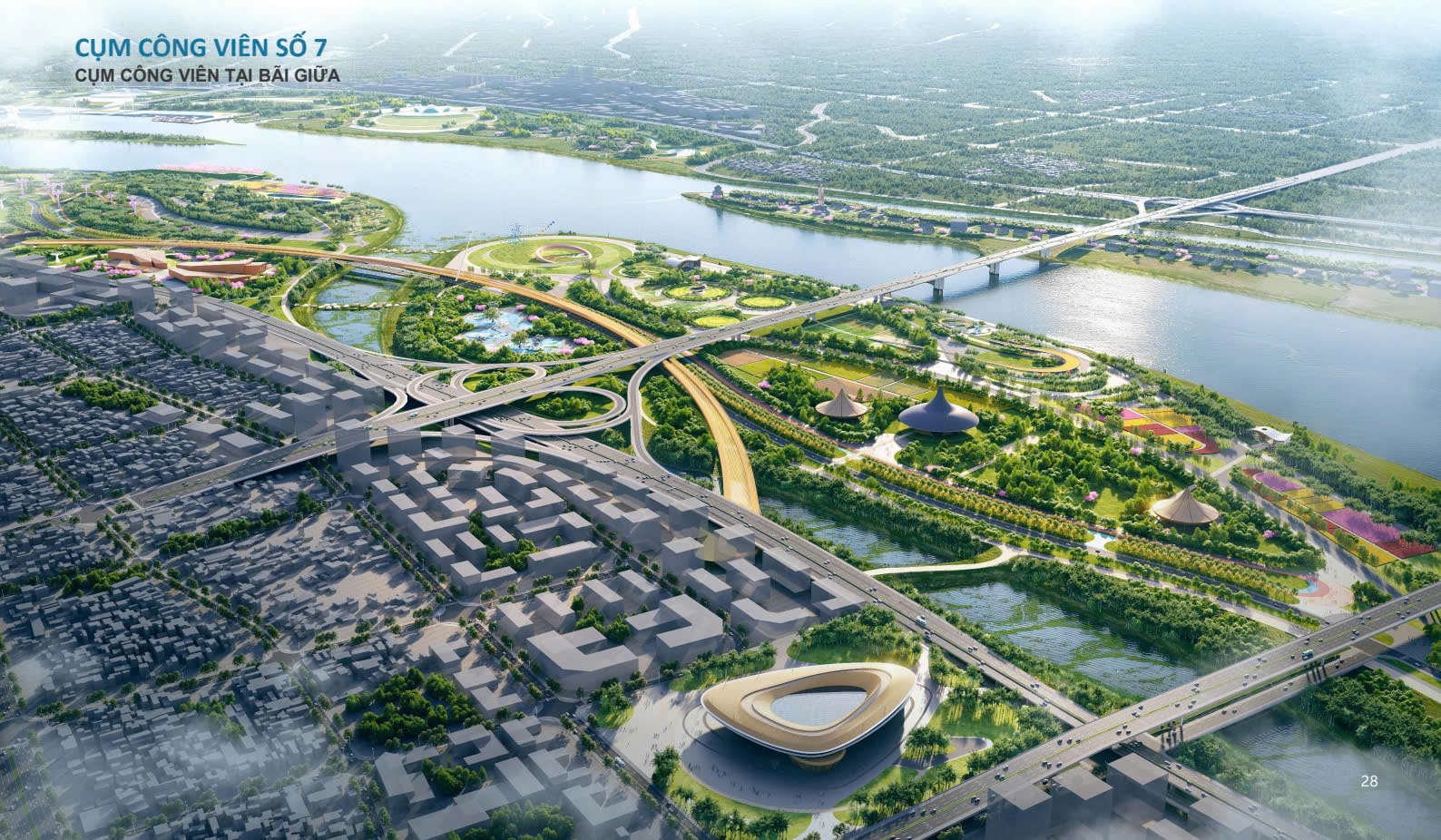 Phối cảnh Công viên sông Hồng thể hiện định hướng phát triển không gian xanh ven sông theo tư duy “hướng sông”, hài hòa giữa bảo tồn cảnh quan, phòng chống lũ và phát triển đô thị hiện đại. Đây được kỳ vọng sẽ trở thành trục sinh thái văn hóa quan trọng, góp phần nâng cao chất lượng sống và kiến tạo bản sắc mới cho Thủ đô.