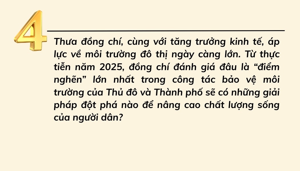 Năm 2025, chúng tôi thẳng thắn nhìn nhận rằng, ô nhiễm môi trường là một trong năm “điểm nghẽn” lớn của Thành phố cần được tập trung giải quyết. Nguyên nhân chủ yếu xuất phát từ áp lực phát thải ngày càng gia tăng trong bối cảnh đô thị hóa nhanh, quy mô dân số lớn và cường độ hoạt động kinh tếxã hội cao.