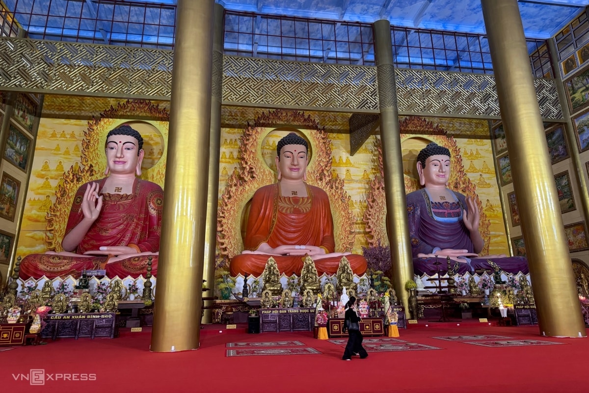 Đại Hùng Bảo Điện với ba tượng Phật cao 21 m. Ở giữa là tượng Phật Thích Ca, bên phải là tượng phật Dược Sư, bên trái là tượng phật A Di Đà .